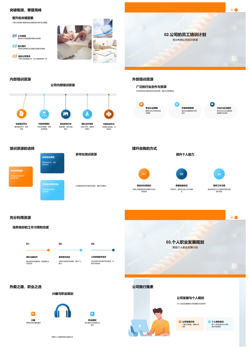 晋升阶梯职业蓝图与公司培训资源技能知识PPT模板推荐