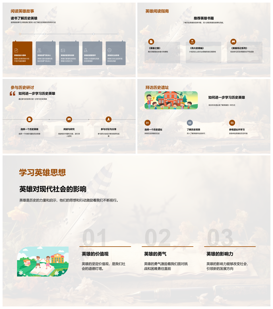 这是一张历史英雄精神思想行动与社会榜样PPT模板,包含历史、英雄、精神、思想、行动、社会、榜样等主题内容,也可用作历史英雄精神思想、英雄精神思想行动、历史英雄思想行动、英雄精神社会榜样、精神思想行动社会、历史精神思想行动、历史英雄社会榜样、英雄思想行动社会、思想行动社会榜样、精神行动社会榜样、历史英雄精神、英雄精神思想、精神思想行动、思想行动社会、社会榜样英雄等PPT场景使用。