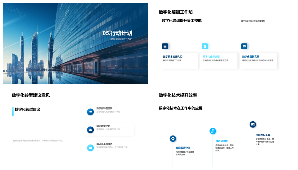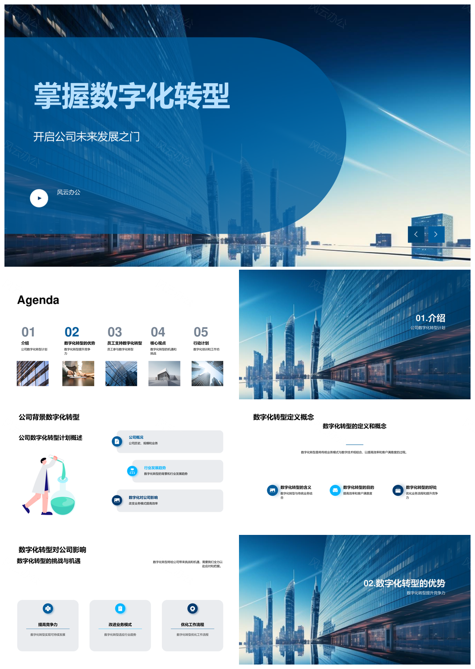 风云办公提供的高管员工行业数字化转型工作计划解析PPT模板,下载格式为pptx,一共22页,作品中文字及图均可以修改和编辑,图片更改请在作品中右键图片并更换,文字修改请直接点击文字进行修改。