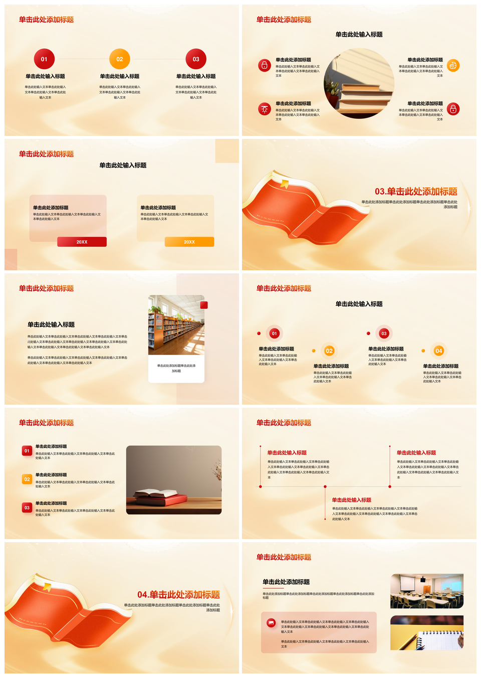 红黄渐变插画书党课培训启征程PPT模板