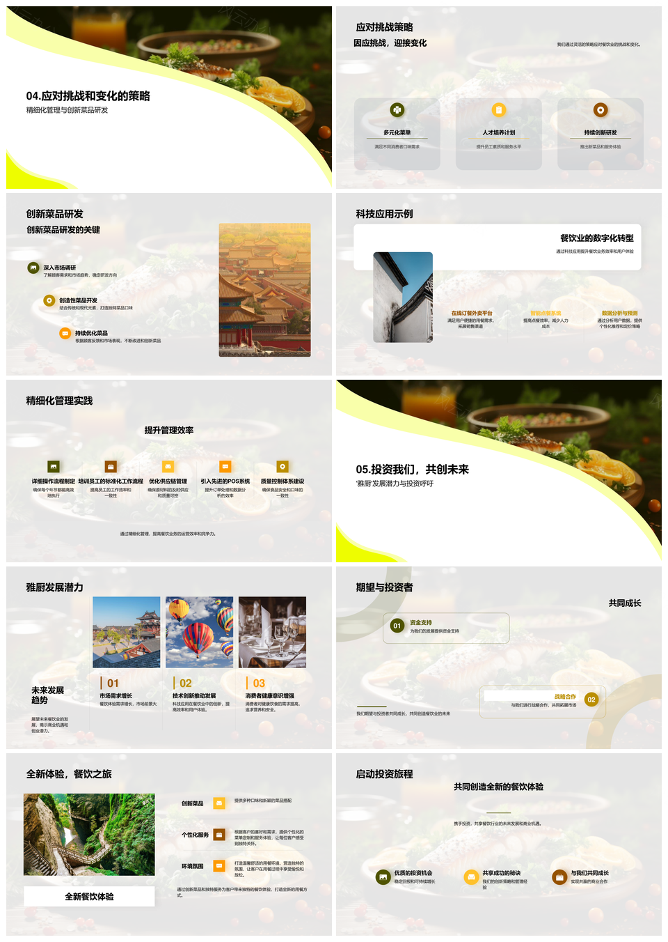 风云办公提供的雅厨餐饮品牌竞争优势与行业发展策略PPT模板,下载格式为pptx,一共28页,作品中文字及图均可以修改和编辑,图片更改请在作品中右键图片并更换,文字修改请直接点击文字进行修改。