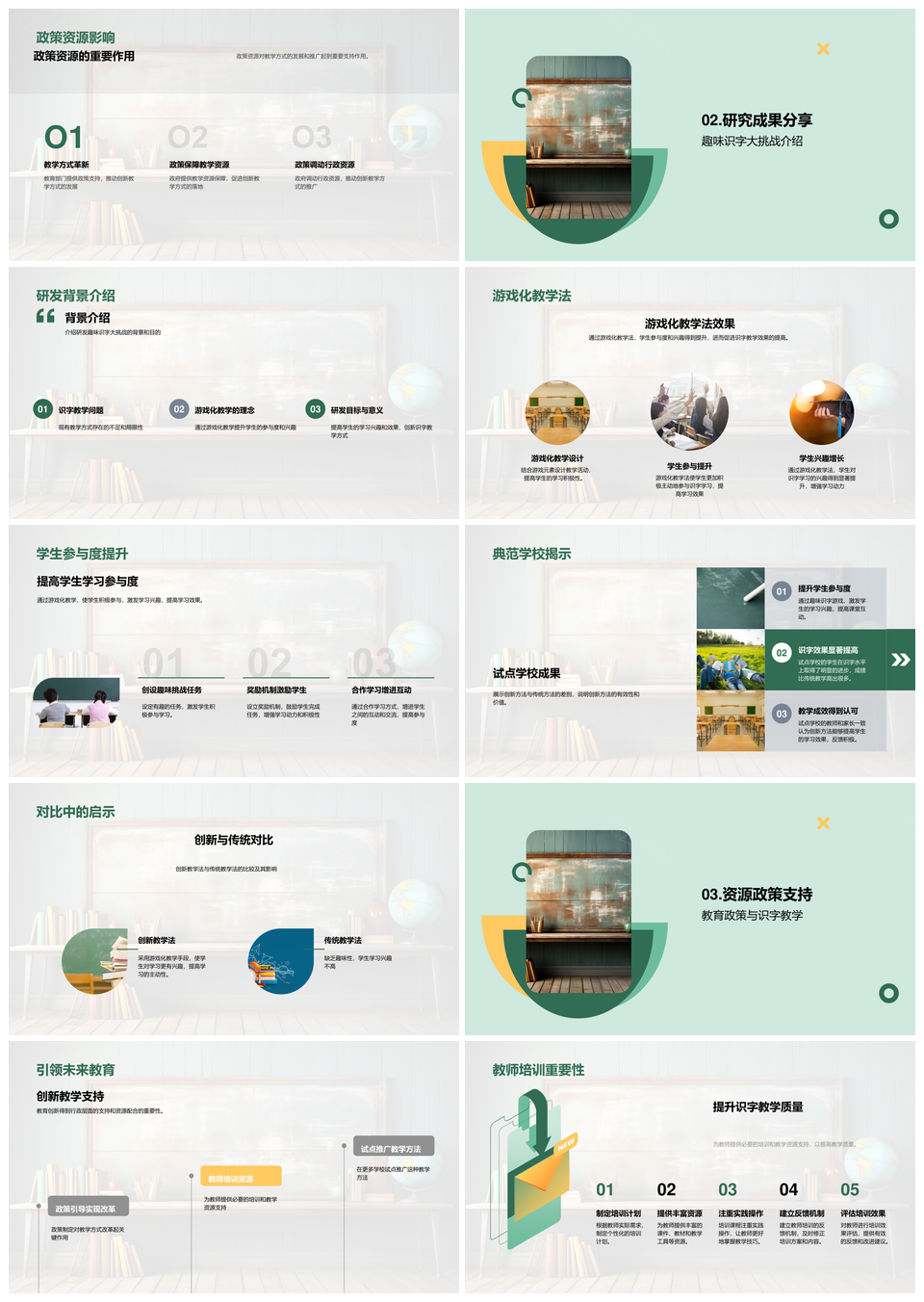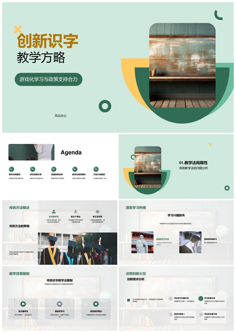 这是一张创新识字游戏化教学政策支持行动计划成效PPT模板,包含创新、识字、游戏化、教学、政策、支持、行动、计划、成效等主题内容,也可用作创新识字游戏化教学、政策支持行动计划、创新识字游戏化、识字游戏化教学、政策支持行动、支持行动计划、行动计划成效、创新识字、识字游戏化、游戏化教学、政策支持、支持行动、行动计划、计划成效、教学政策支持等PPT场景使用。 风云办公提供的创新识字游戏化教学政策支持行动计划成效PPT模板,下载格式为pptx,一共33页,作品中文字及图均可以修改和编辑,图片更改请在作品中右键图片并更换,文字修改请直接点击文字进行修改。