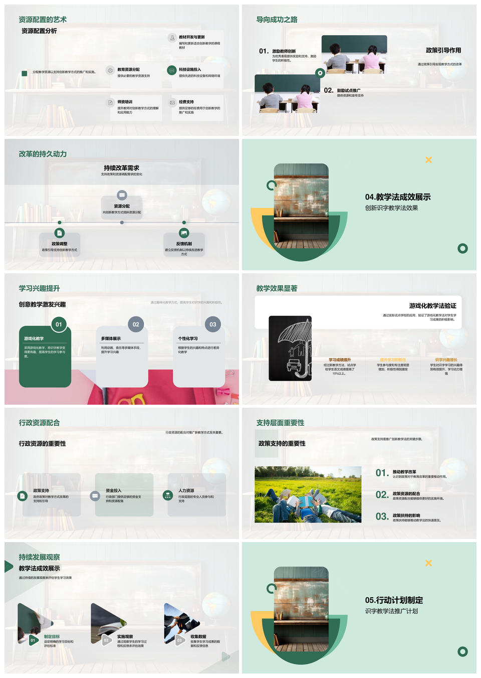 创新识字游戏化教学政策支持行动计划成效PPT模板