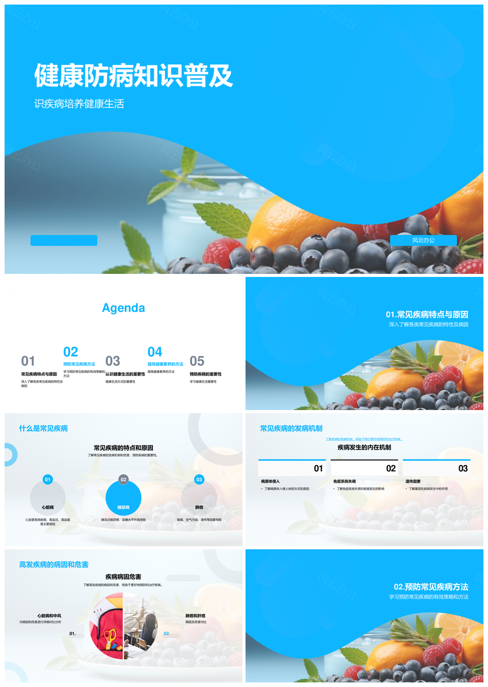 风云办公提供的健康生活预防常见疾病合理饮食运动PPT模板,下载格式为pptx,一共28页,作品中文字及图均可以修改和编辑,图片更改请在作品中右键图片并更换,文字修改请直接点击文字进行修改。