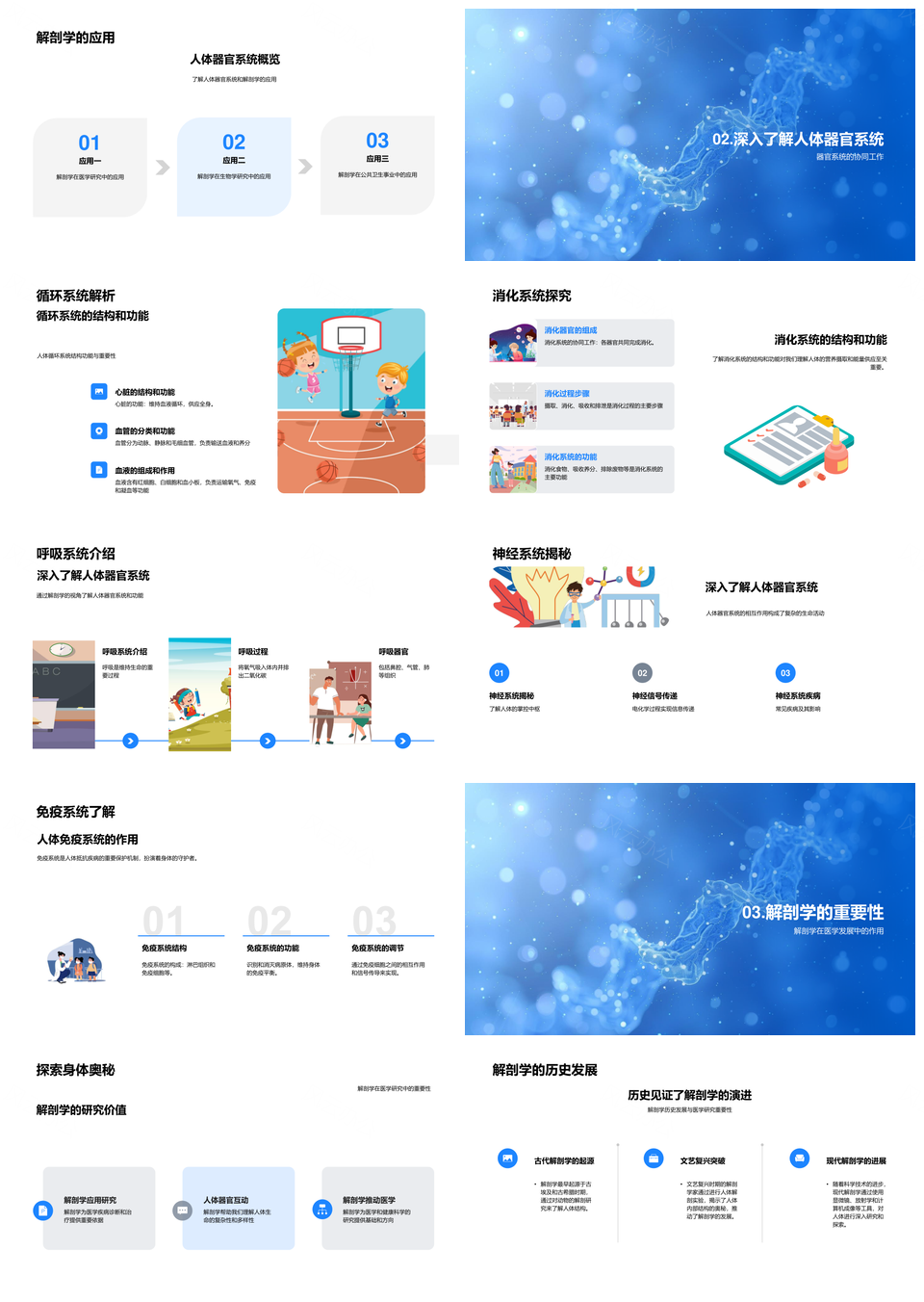 这是一张人体器官解剖学四大系统生物学医学研究PPT模板,包含人体器官、解剖学、四大系统、生物学、医学研究等主题内容,也可用作人体器官解剖学四大系统、解剖学四大系统生物学、系统生物学医学研究、四大系统生物学医学、人体器官解剖学、解剖学四大系统、四大系统生物学、系统生物学医学、生物学医学研究、人体器官、器官解剖学、解剖学四大、四大系统、系统生物学、医学研究等PPT场景使用。 风云办公提供的人体器官解剖学四大系统生物学医学研究PPT模板,下载格式为pptx,一共33页,作品中文字及图均可以修改和编辑,图片更改请在作品中右键图片并更换,文字修改请直接点击文字进行修改。