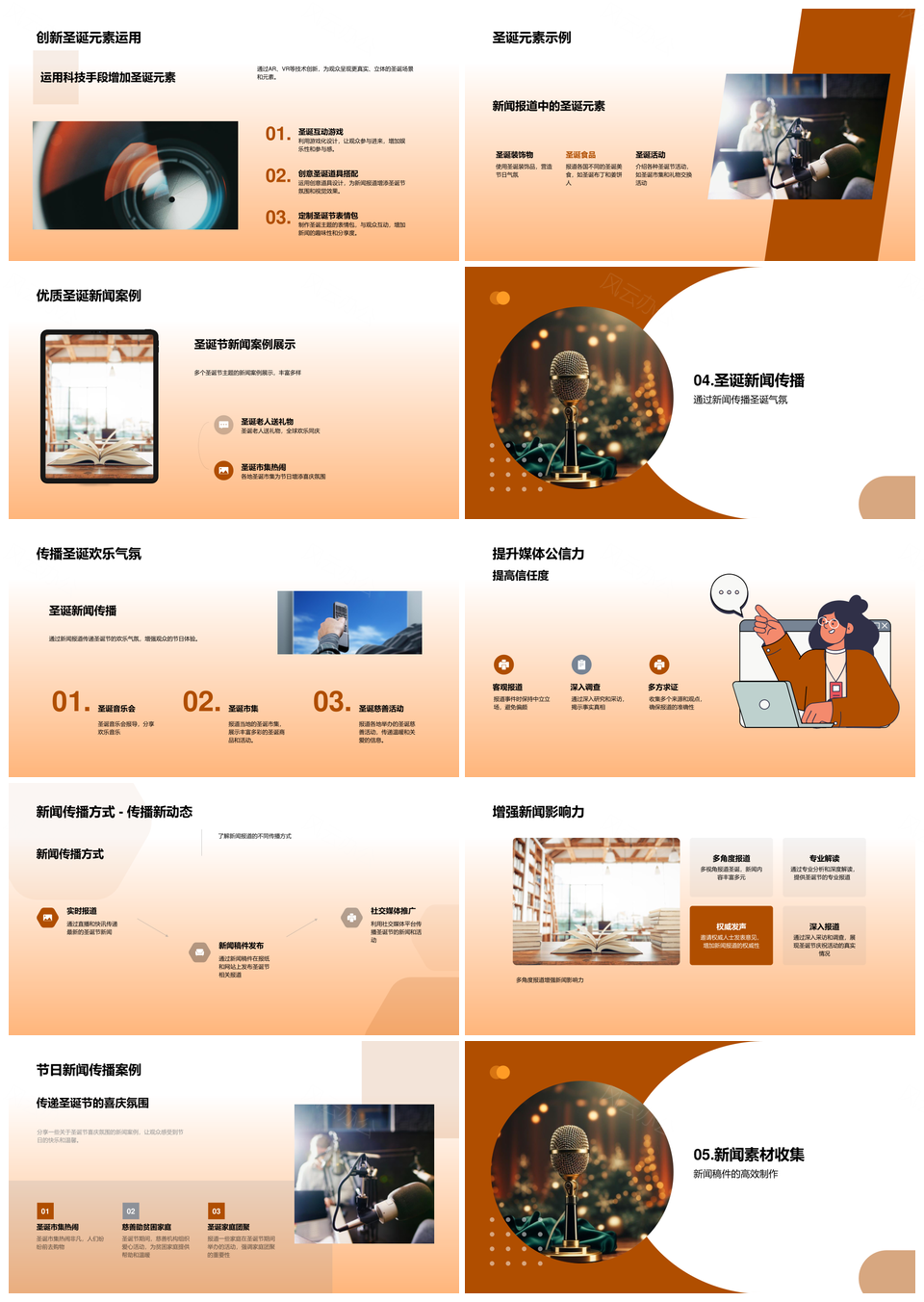 风云办公提供的圣诞新闻传播策略公信力观赏性报道PPT模板,下载格式为pptx,一共33页,作品中文字及图均可以修改和编辑,图片更改请在作品中右键图片并更换,文字修改请直接点击文字进行修改。