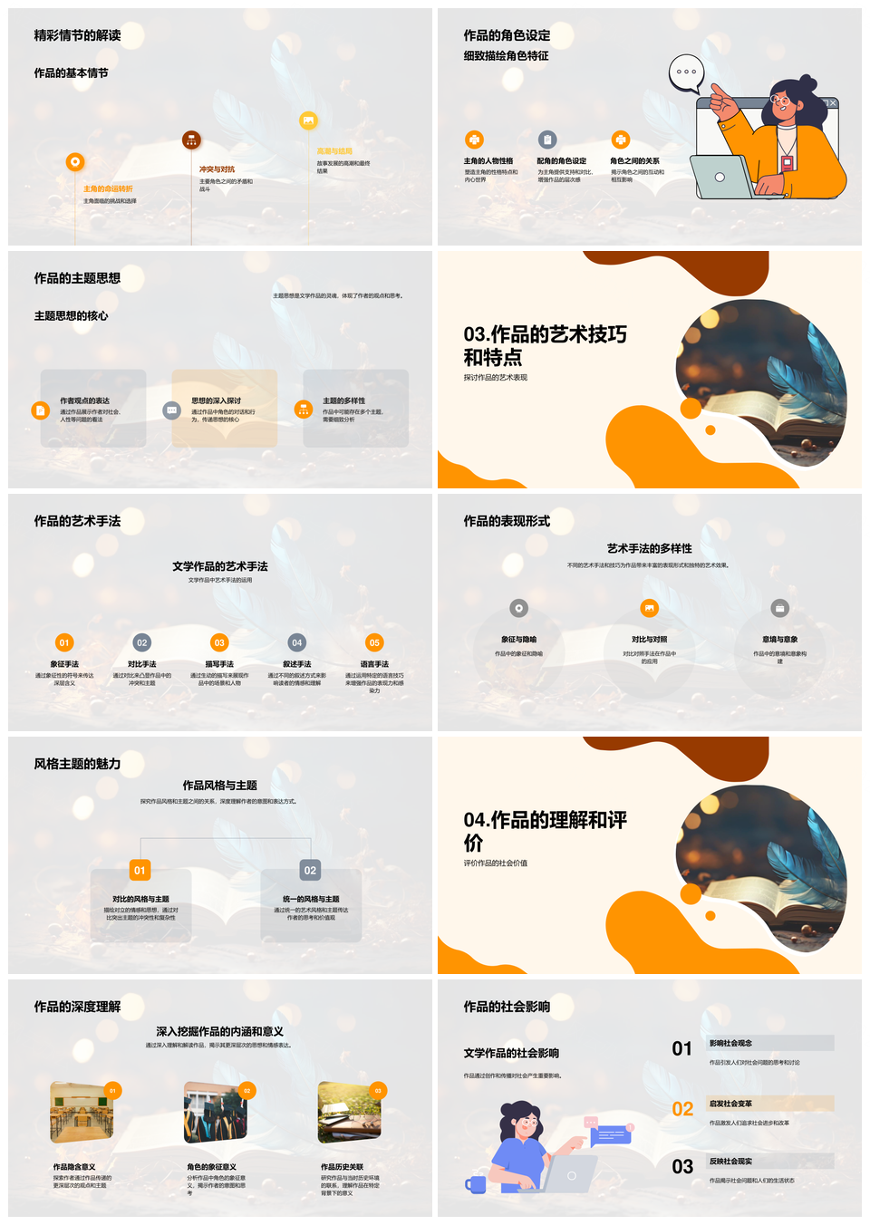 风云办公提供的解析作者生平背景下的文学艺术与主题PPT模板,下载格式为pptx,一共23页,作品中文字及图均可以修改和编辑,图片更改请在作品中右键图片并更换,文字修改请直接点击文字进行修改。