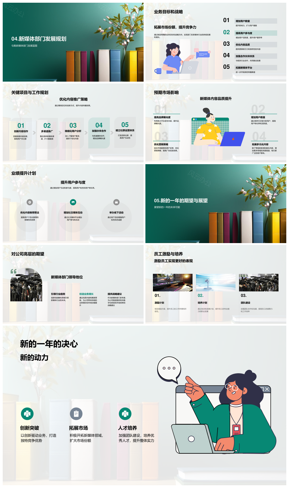 2025新媒体年鉴行业展望策划结构项目份额数字媒体PPT模板推荐