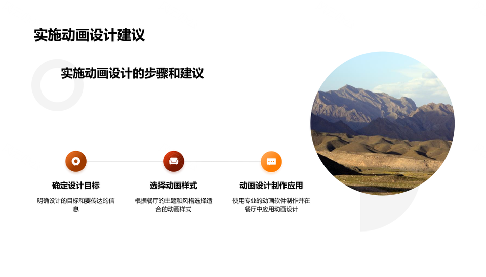 这是一张餐饮动画设计创新提升服务菜品竞争PPT模板,包含餐饮、动画设计、创新、提升、服务、菜品、竞争等主题内容,也可用作餐饮动画设计创新提升、动画设计创新提升服务、设计创新提升服务菜品、创新提升服务菜品竞争、餐饮动画设计创新、动画设计创新提升、设计创新提升服务、创新提升服务菜品、提升服务菜品竞争、餐饮动画设计、动画设计创新、设计创新提升、创新提升服务、提升服务菜品、服务菜品竞争等PPT场景使用。