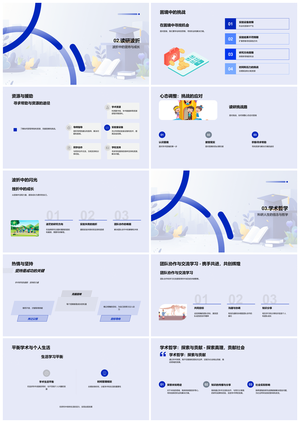 毕业生学术答辩研究挑战资源策略实验室生活心态PPT模板推荐