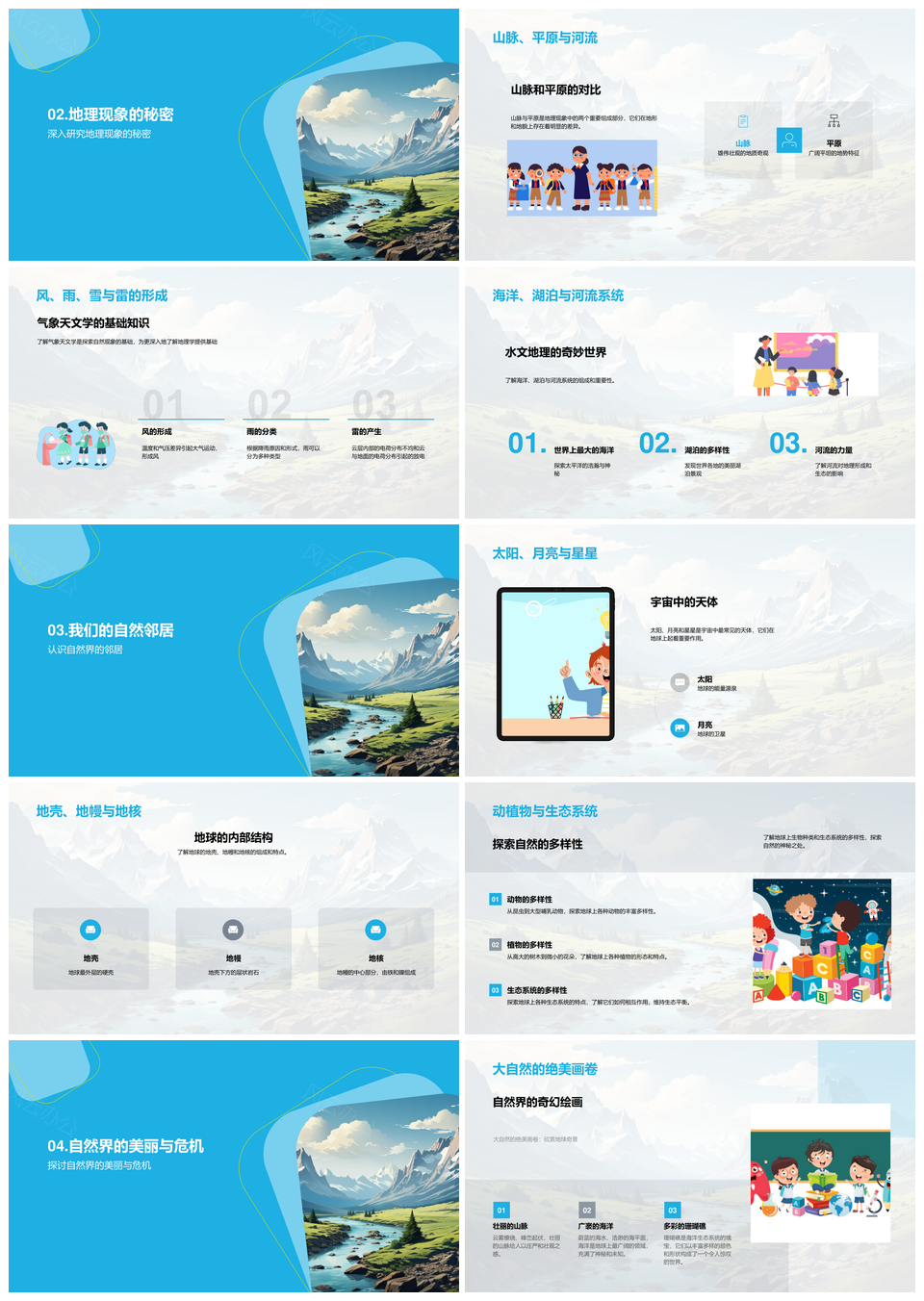 这是一张探索自然现象地形气候水文山脉生态保护PPT模板,包含自然现象、地形、气候、水文、山脉、生态保护等主题内容,也可用作探索自然现象地形、自然现象地形气候、地形气候水文山脉、气候水文山脉生态、水文山脉生态保护、探索自然现象、自然现象地形、地形气候水文、气候水文山脉、山脉生态保护、探索自然、自然现象、地形气候、气候水文、生态保护等PPT场景使用。 风云办公提供的探索自然现象地形气候水文山脉生态保护PPT模板,下载格式为pptx,一共24页,作品中文字及图均可以修改和编辑,图片更改请在作品中右键图片并更换,文字修改请直接点击文字进行修改。