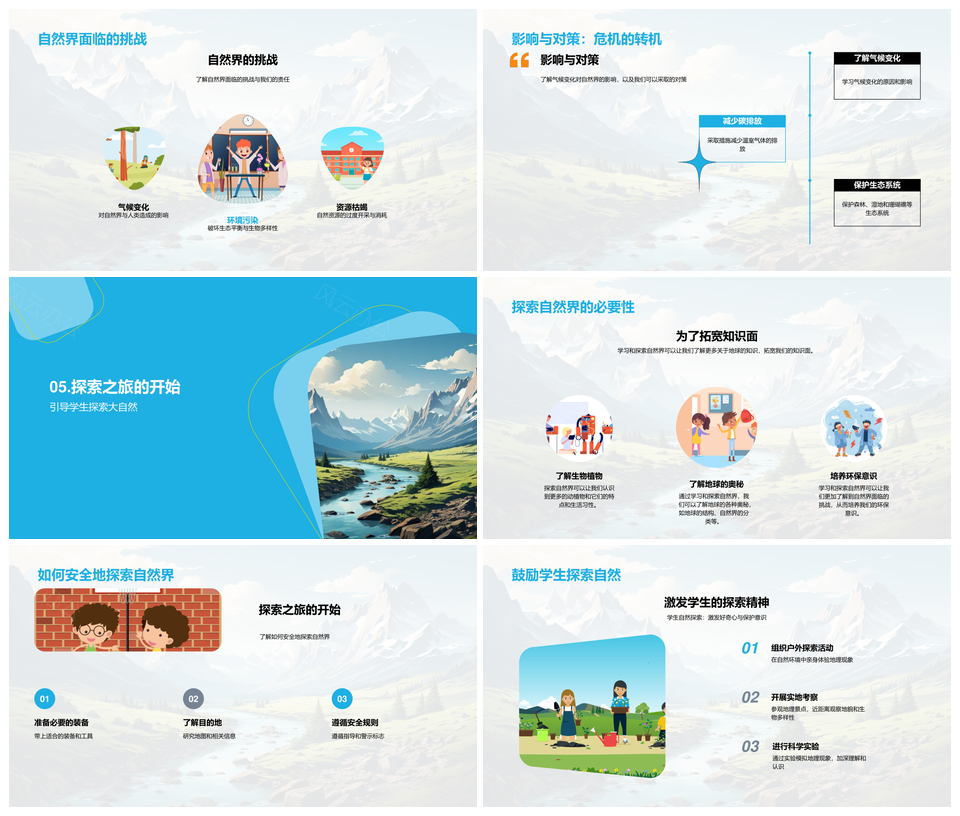 探索自然现象地形气候水文山脉生态保护PPT模板推荐