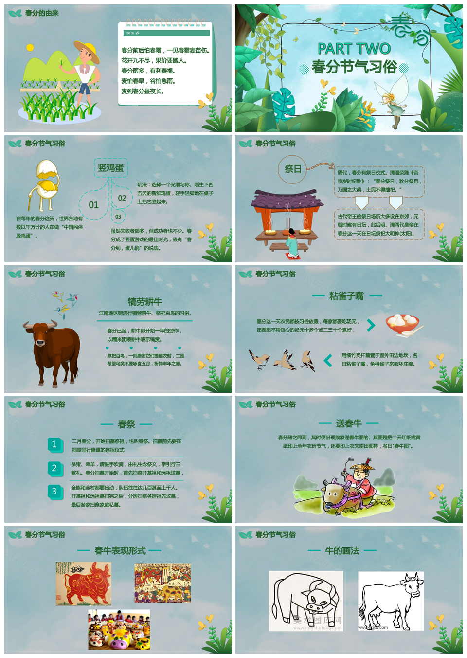 这是一张这个传统二十节气之春分认识春天PPT模板,包含传统、二十节气、春分、认识、春天等主题内容,也可用作传统、二十节气、春分、认识、春天 传统二十节气春分、春分认识春天、传统二十节气、二十节气春分、春分认识、认识春天等PPT场景使用。 风云办公提供的这个传统二十节气之春分认识春天PPT模板,下载格式为pptx,一共20页,作品中文字及图均可以修改和编辑,图片更改请在作品中右键图片并更换,文字修改请直接点击文字进行修改。