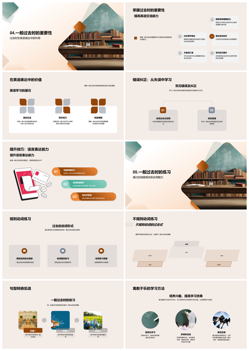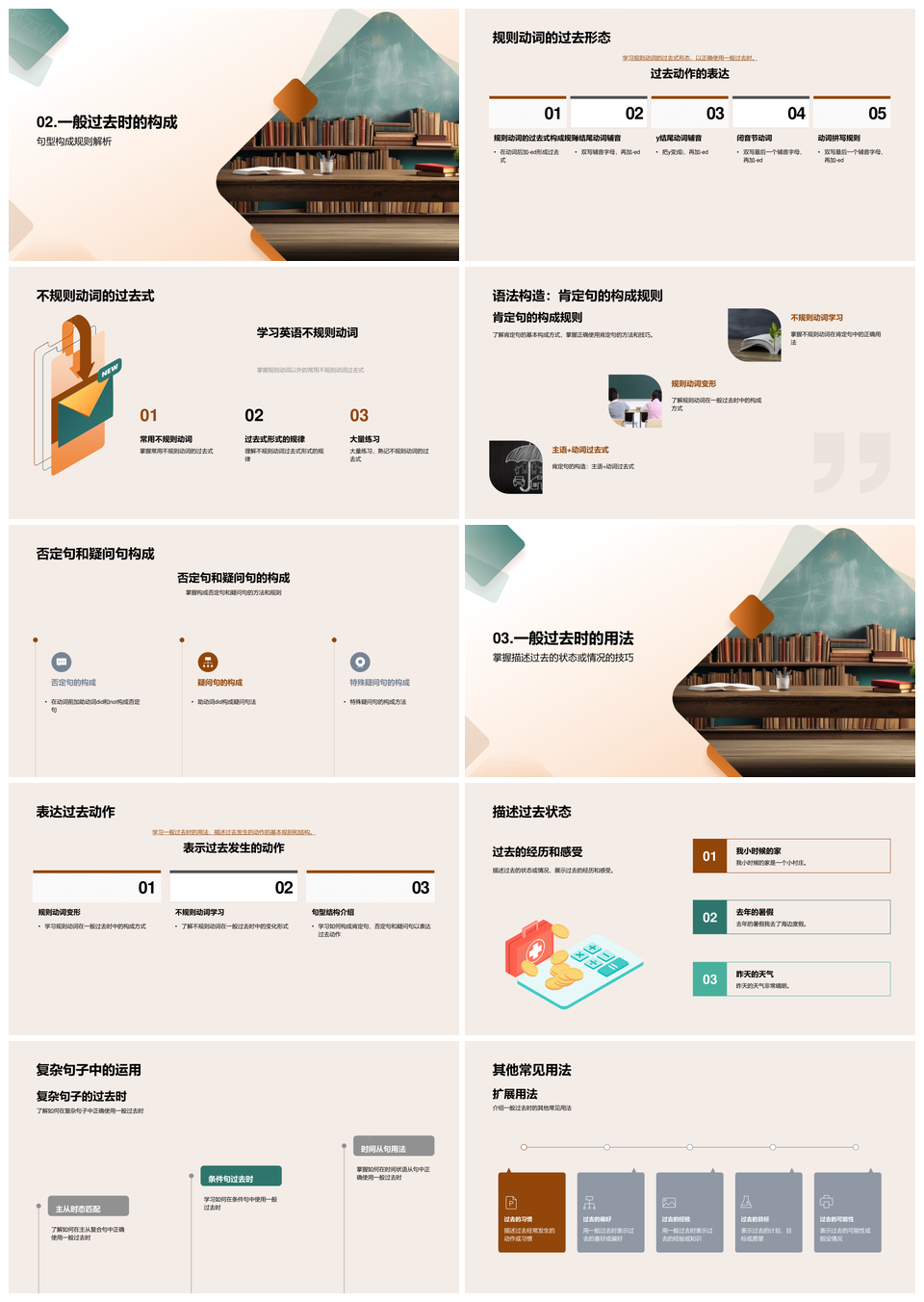 这是一张英语一般过去时规则不规则动词句型构成解析PPT模板,包含英语、一般过去时、规则、不规则动词、句型构成、解析等主题内容,也可用作一般过去时规则不规则动词句型构成解析、规则不规则动词句型构成解析、英语一般过去时规则不规则动词、一般过去时规则不规则动词、规则不规则动词句型构成、不规则动词句型构成解析、动词句型构成解析、英语一般过去时规则不规则、英语一般过去时规则动词、句型构成解析、英语一般过去时规则、规则不规则动词句型、一般过去时规则动词、动词句型构成、构成解析等PPT场景使用。 风云办公提供的英语一般过去时规则不规则动词句型构成解析PPT模板,下载格式为pptx,一共28页,作品中文字及图均可以修改和编辑,图片更改请在作品中右键图片并更换,文字修改请直接点击文字进行修改。