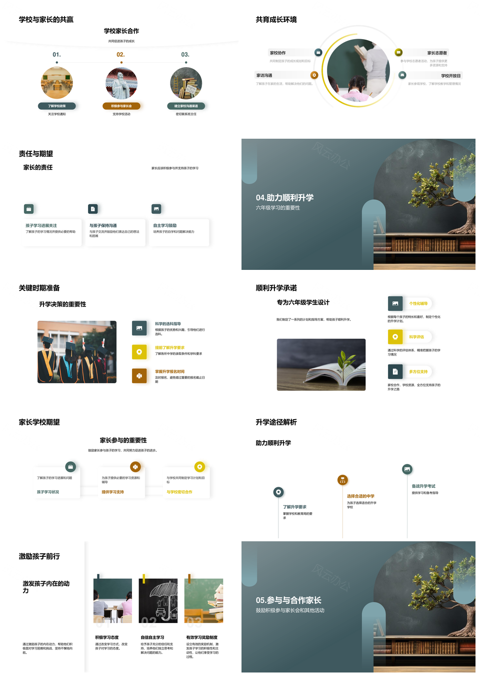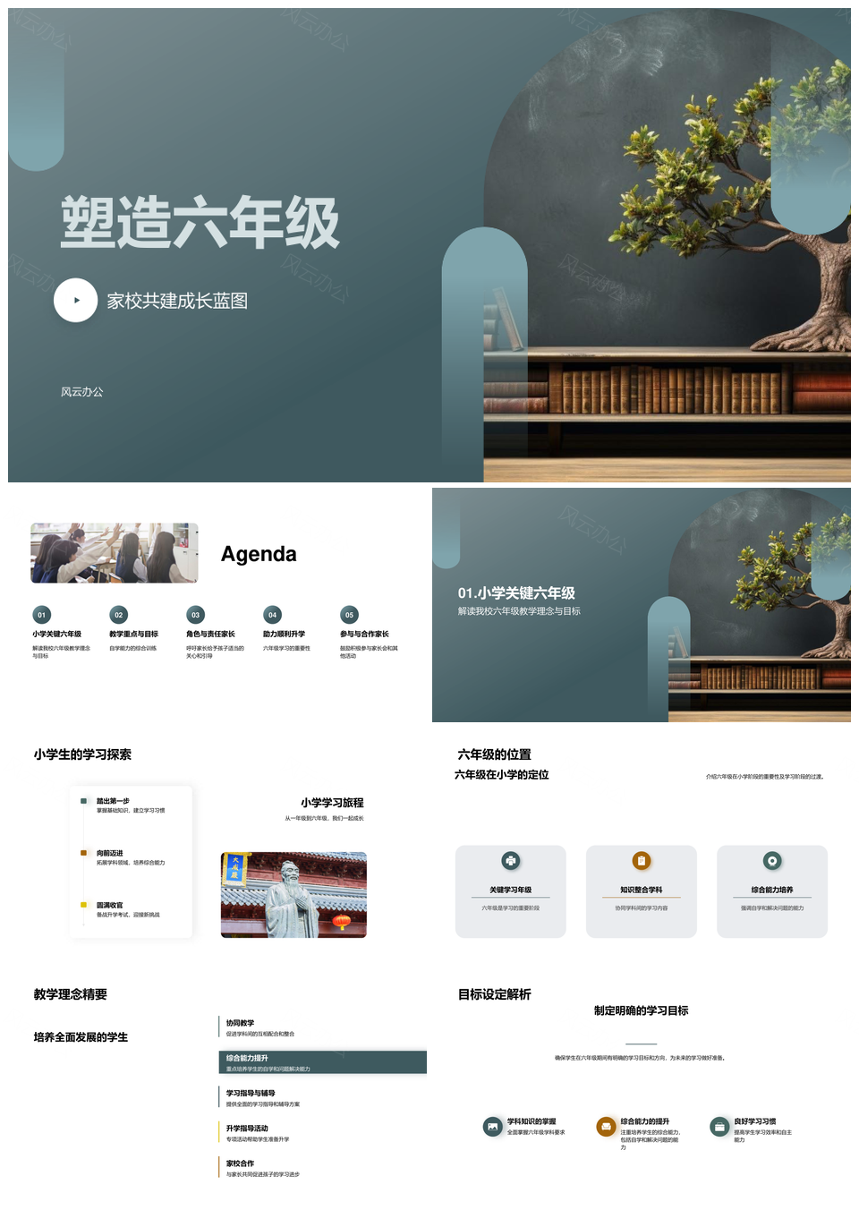 风云办公提供的家校共筑六年级成长蓝图助力升学PPT模板,下载格式为pptx,一共33页,作品中文字及图均可以修改和编辑,图片更改请在作品中右键图片并更换,文字修改请直接点击文字进行修改。