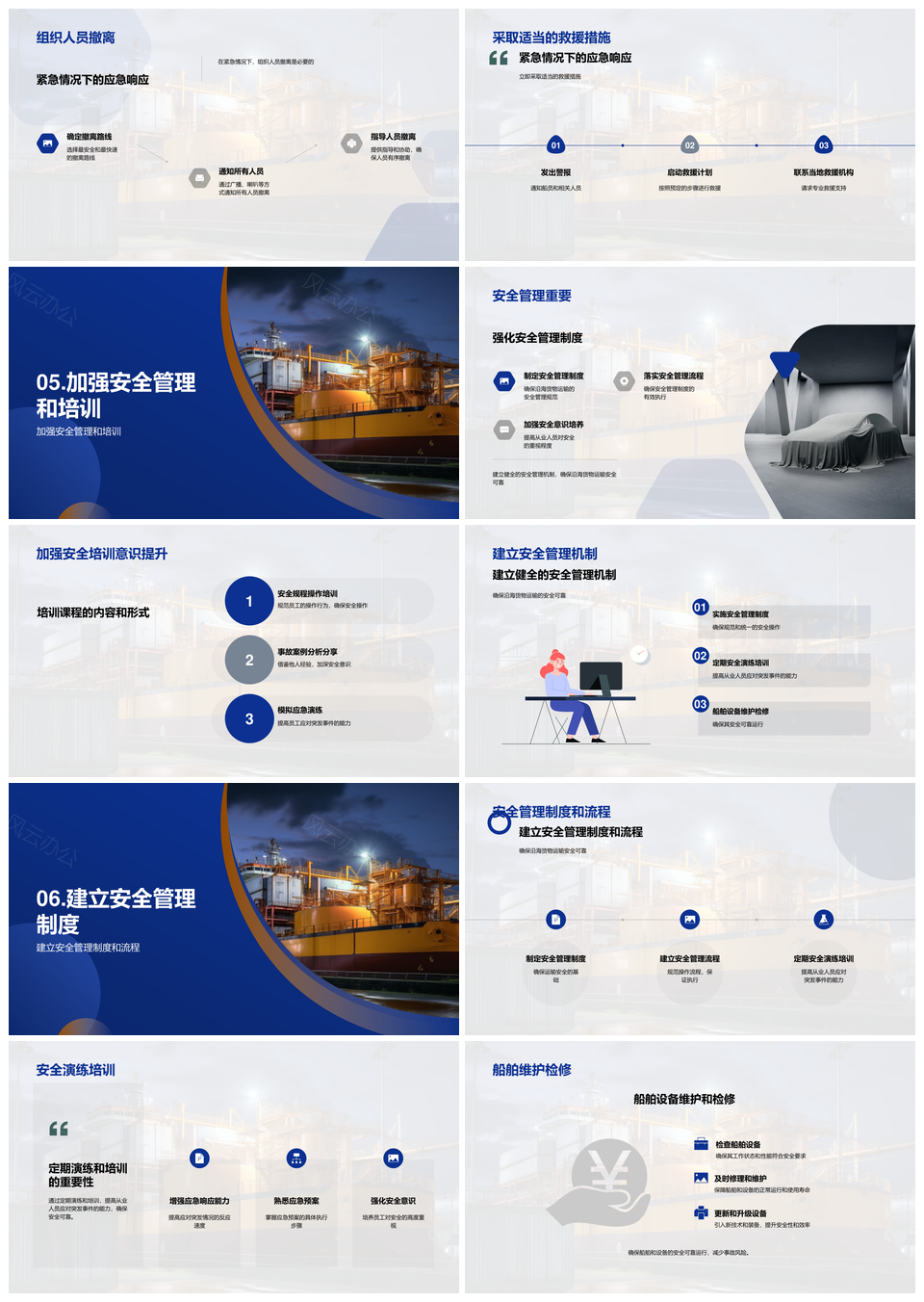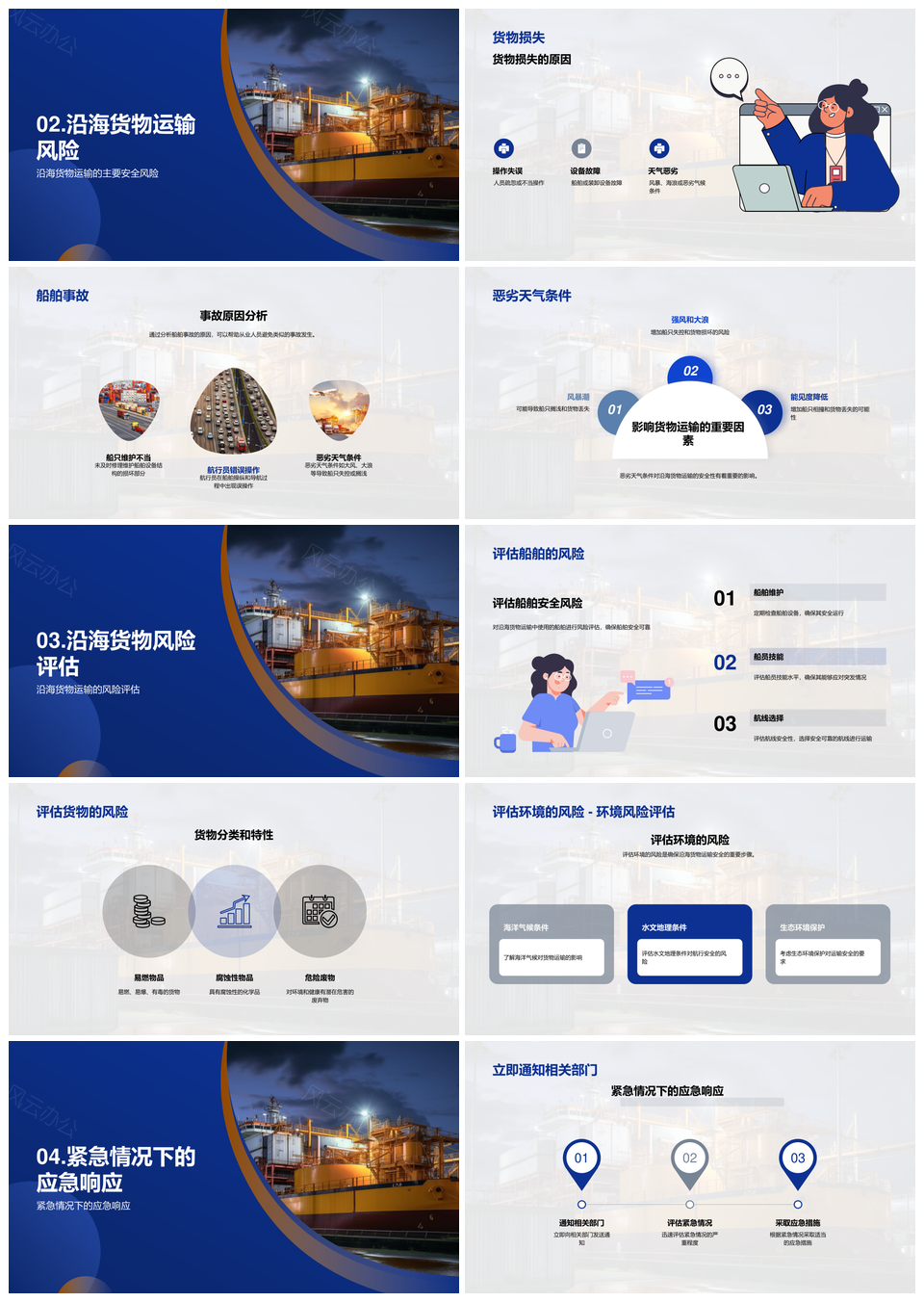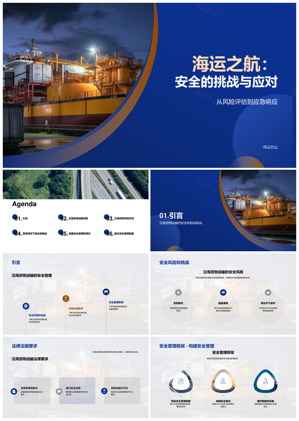 风云办公提供的货船安全风险评估与应急响应管理PPT模板,下载格式为pptx,一共28页,作品中文字及图均可以修改和编辑,图片更改请在作品中右键图片并更换,文字修改请直接点击文字进行修改。