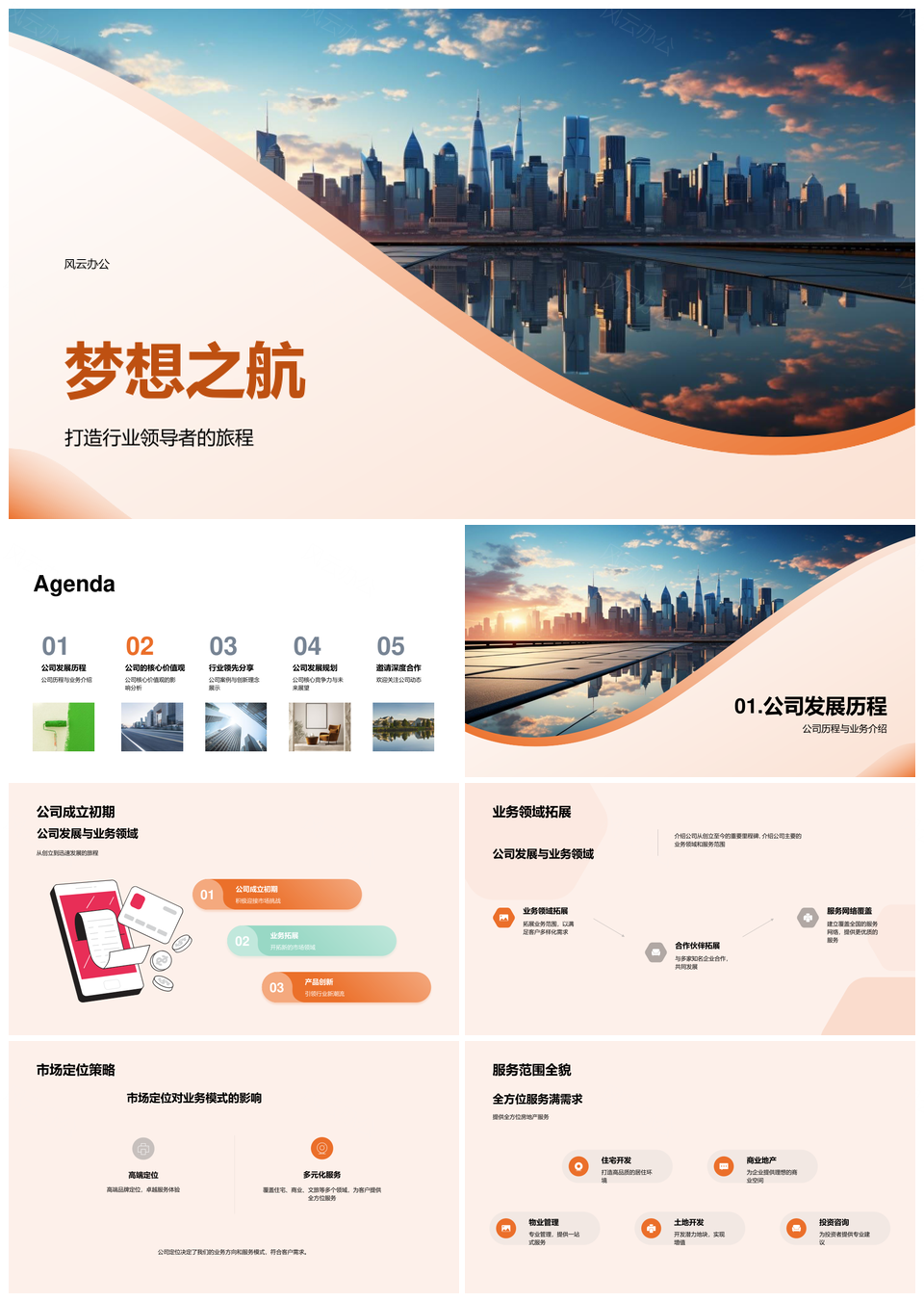 这是一张梦想之航房地产领导者愿景核心研发摩天大楼PPT模板,包含梦想之航、房地产、领导者、愿景、核心、研发、摩天大楼等主题内容,也可用作梦想之航房地产领导者愿景、房地产领导者愿景核心、领导者愿景核心研发、愿景核心研发摩天大楼、梦想之航房地产领导者、房地产领导者愿景、领导者愿景核心、愿景核心研发、核心研发摩天大楼、梦想之航房地产、房地产领导者、领导者愿景、愿景核心、核心研发、研发摩天大楼等PPT场景使用。 风云办公提供的梦想之航房地产领导者愿景核心研发摩天大楼PPT模板,下载格式为pptx,一共33页,作品中文字及图均可以修改和编辑,图片更改请在作品中右键图片并更换,文字修改请直接点击文字进行修改。