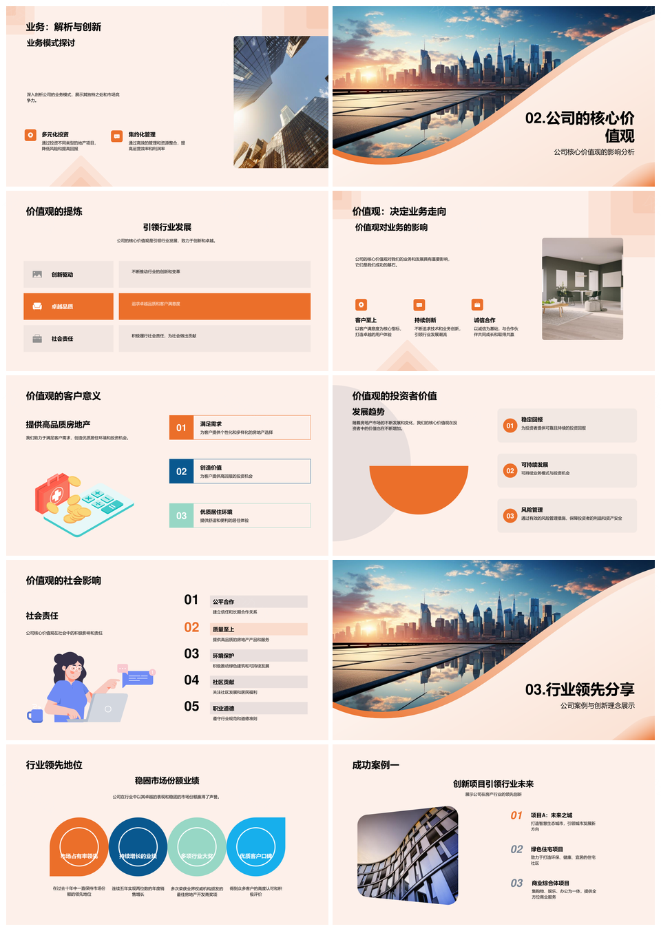 房地产企业文化发展历程核心愿景协作创新筑摩天PPT模板