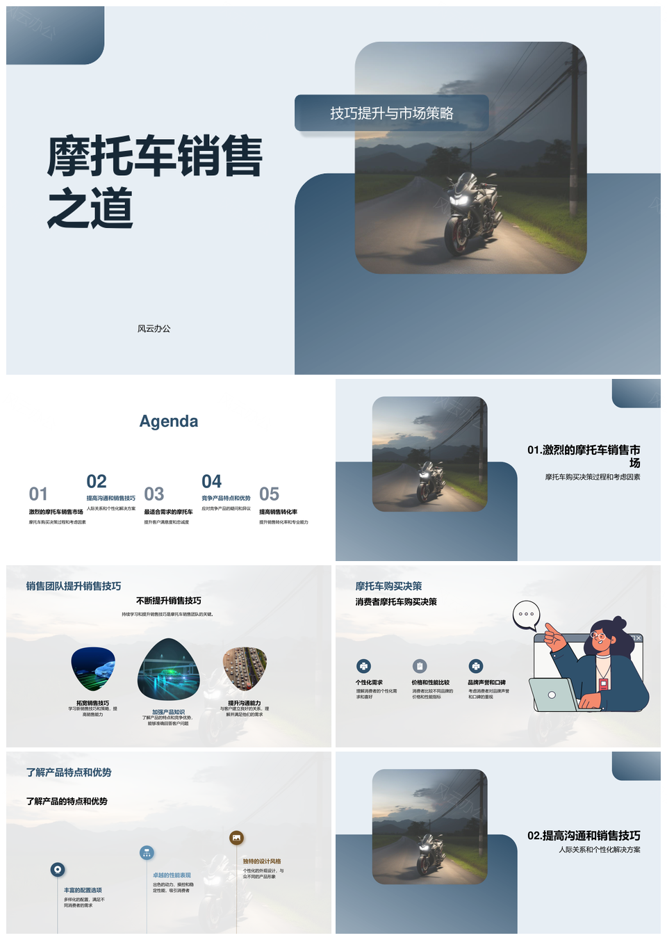 这是一张摩托车销售团队策略技巧与产品竞争优势PPT模板,包含摩托车、销售、团队、策略、技巧、产品、竞争、优势等主题内容,也可用作摩托车销售团队策略技巧、摩托车销售团队策略产品、摩托车销售策略技巧产品、销售团队策略技巧产品、团队策略技巧产品竞争、摩托车销售团队技巧产品、摩托车销售策略产品竞争、销售团队策略产品竞争、摩托车策略技巧产品竞争、销售团队技巧产品竞争、策略技巧产品竞争优势、摩托车销售团队策略、销售团队策略技巧、策略技巧产品竞争、摩托车产品竞争优势等PPT场景使用。 风云办公提供的摩托车销售团队策略技巧与产品竞争优势PPT模板,下载格式为pptx,一共19页,作品中文字及图均可以修改和编辑,图片更改请在作品中右键图片并更换,文字修改请直接点击文字进行修改。