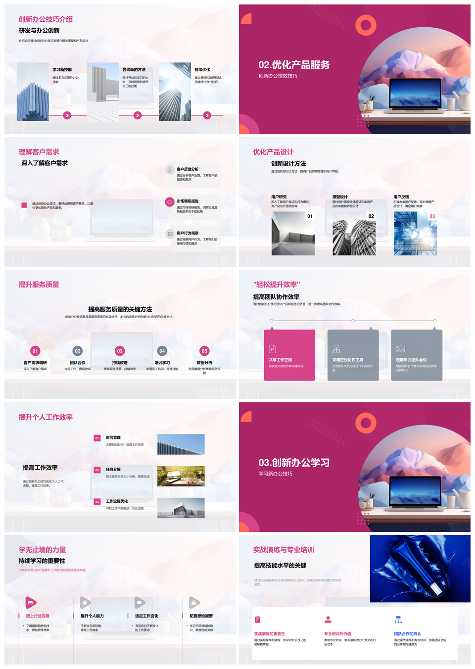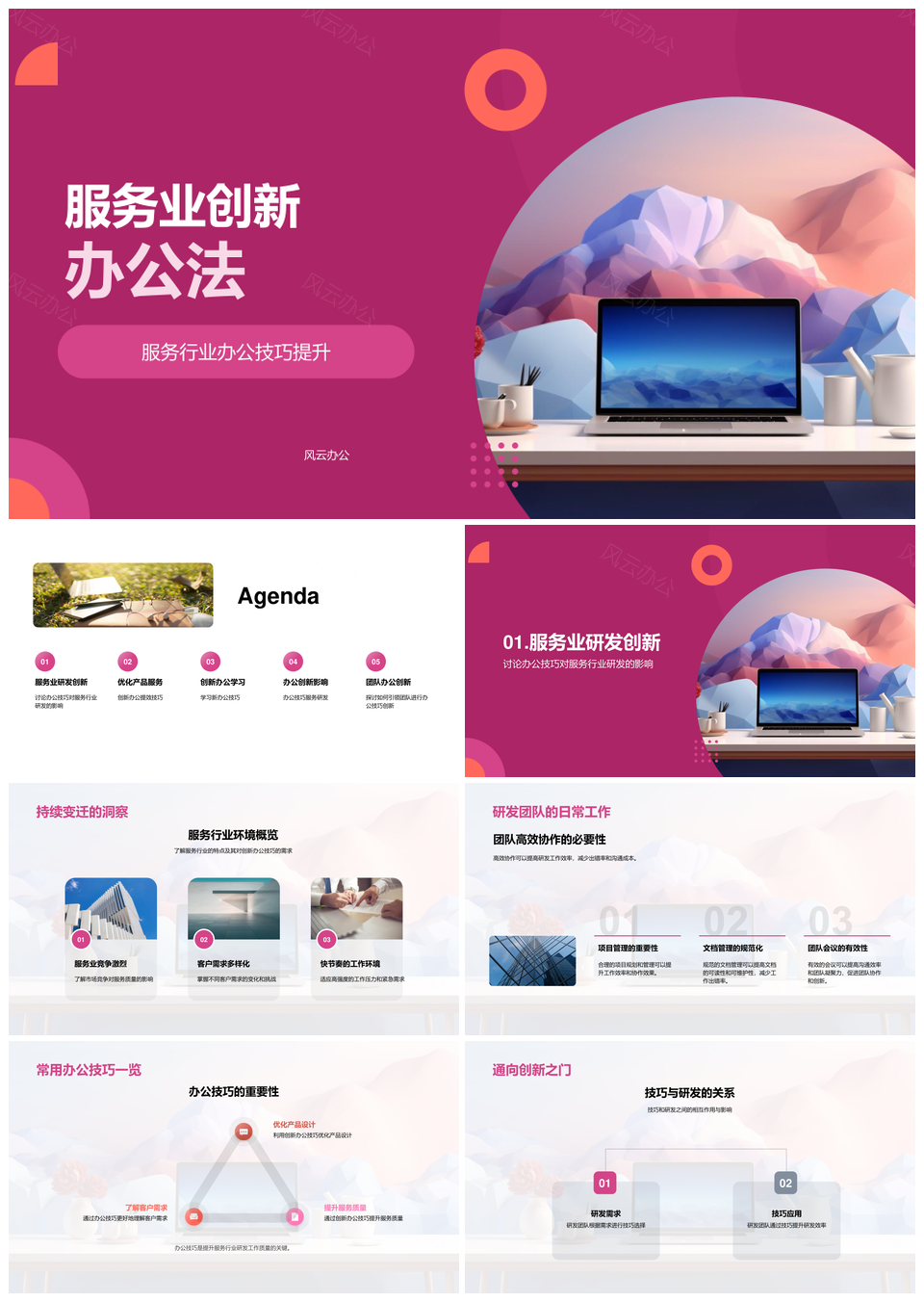 风云办公提供的服务业创新办公研发优服洞察需求PPT模板,下载格式为pptx,一共33页,作品中文字及图均可以修改和编辑,图片更改请在作品中右键图片并更换,文字修改请直接点击文字进行修改。