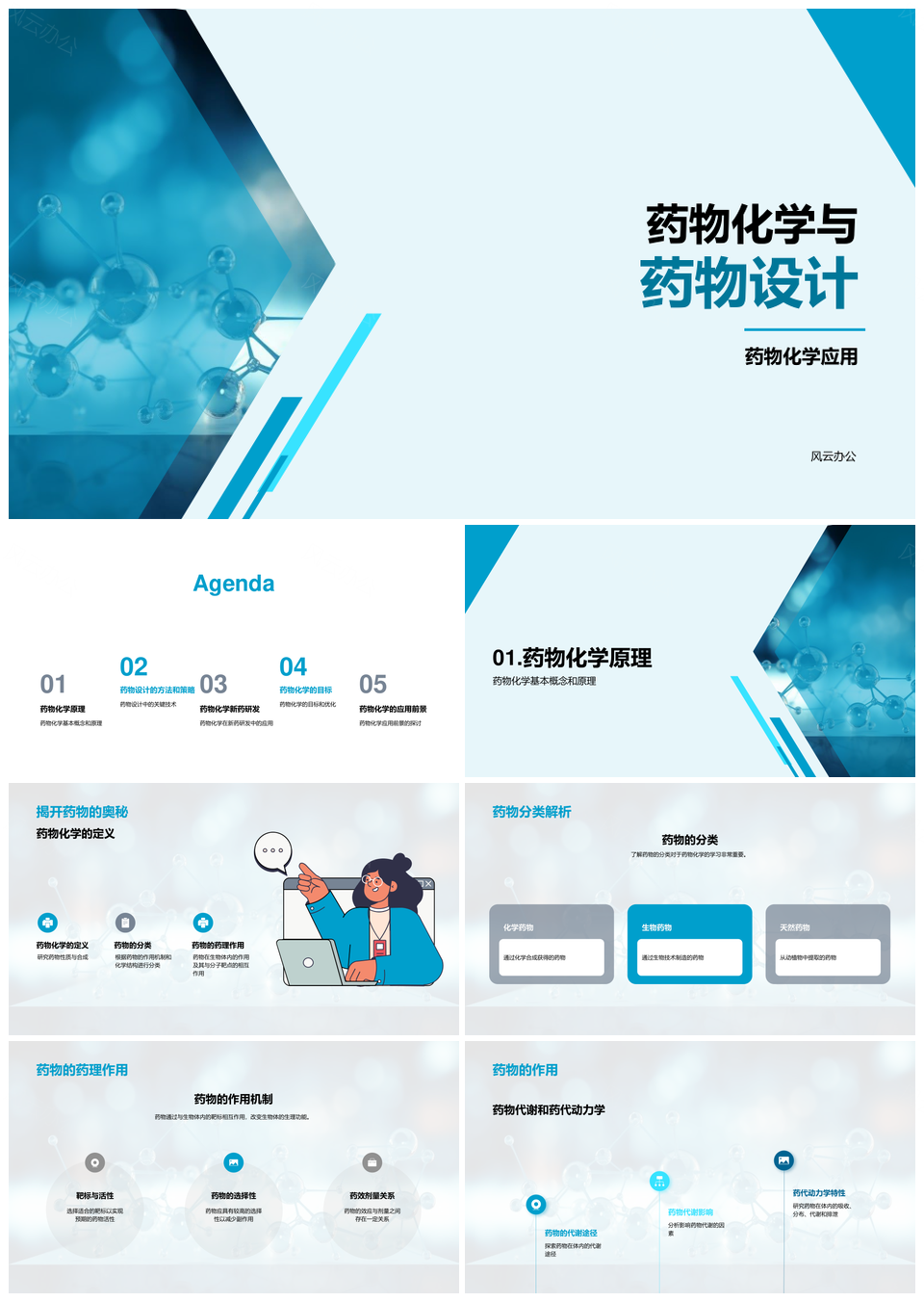 药物化学与设计原理应用分类药理代谢动力学PPT模板推荐