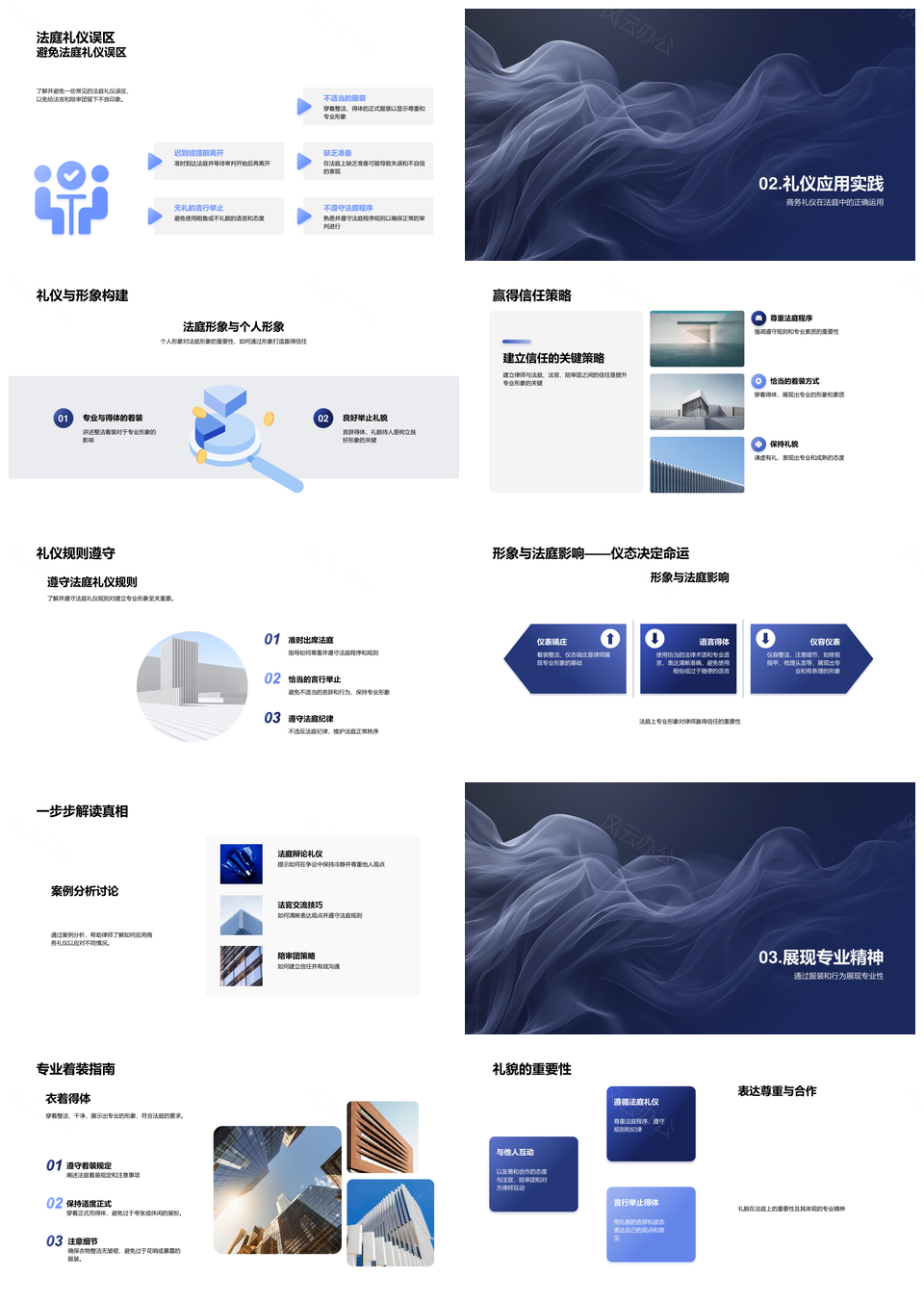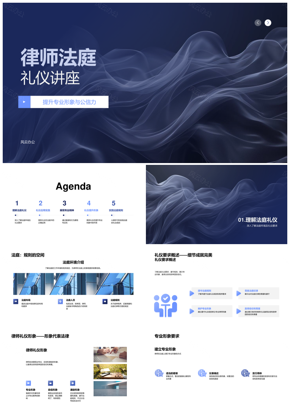 风云办公提供的律师法庭礼仪专业形象公信力提升PPT模板,下载格式为pptx,一共33页,作品中文字及图均可以修改和编辑,图片更改请在作品中右键图片并更换,文字修改请直接点击文字进行修改。