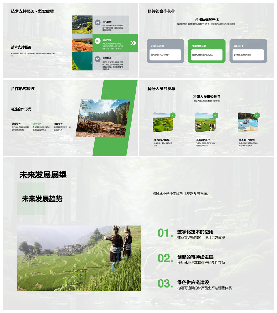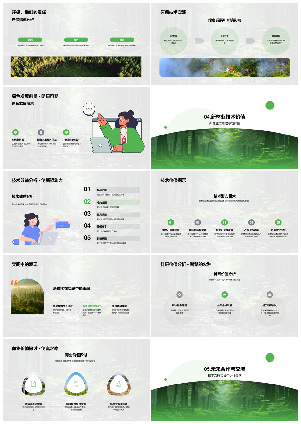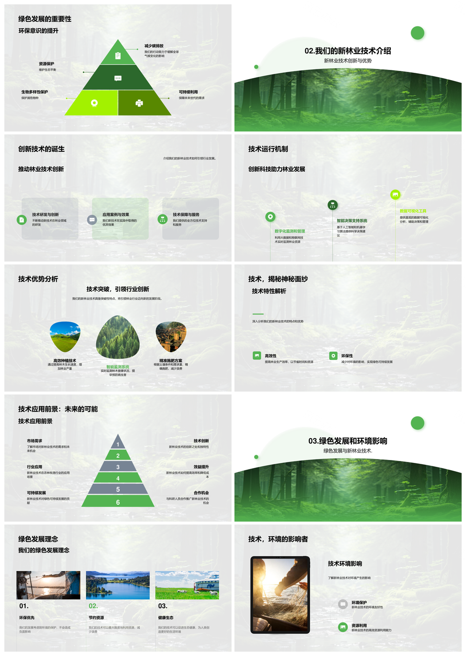 风云办公提供的林业绿色技术创新趋势与挑战PPT模板,下载格式为pptx,一共33页,作品中文字及图均可以修改和编辑,图片更改请在作品中右键图片并更换,文字修改请直接点击文字进行修改。