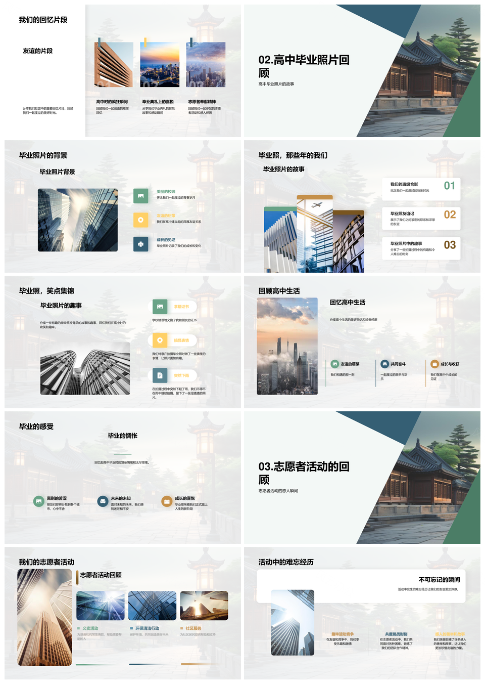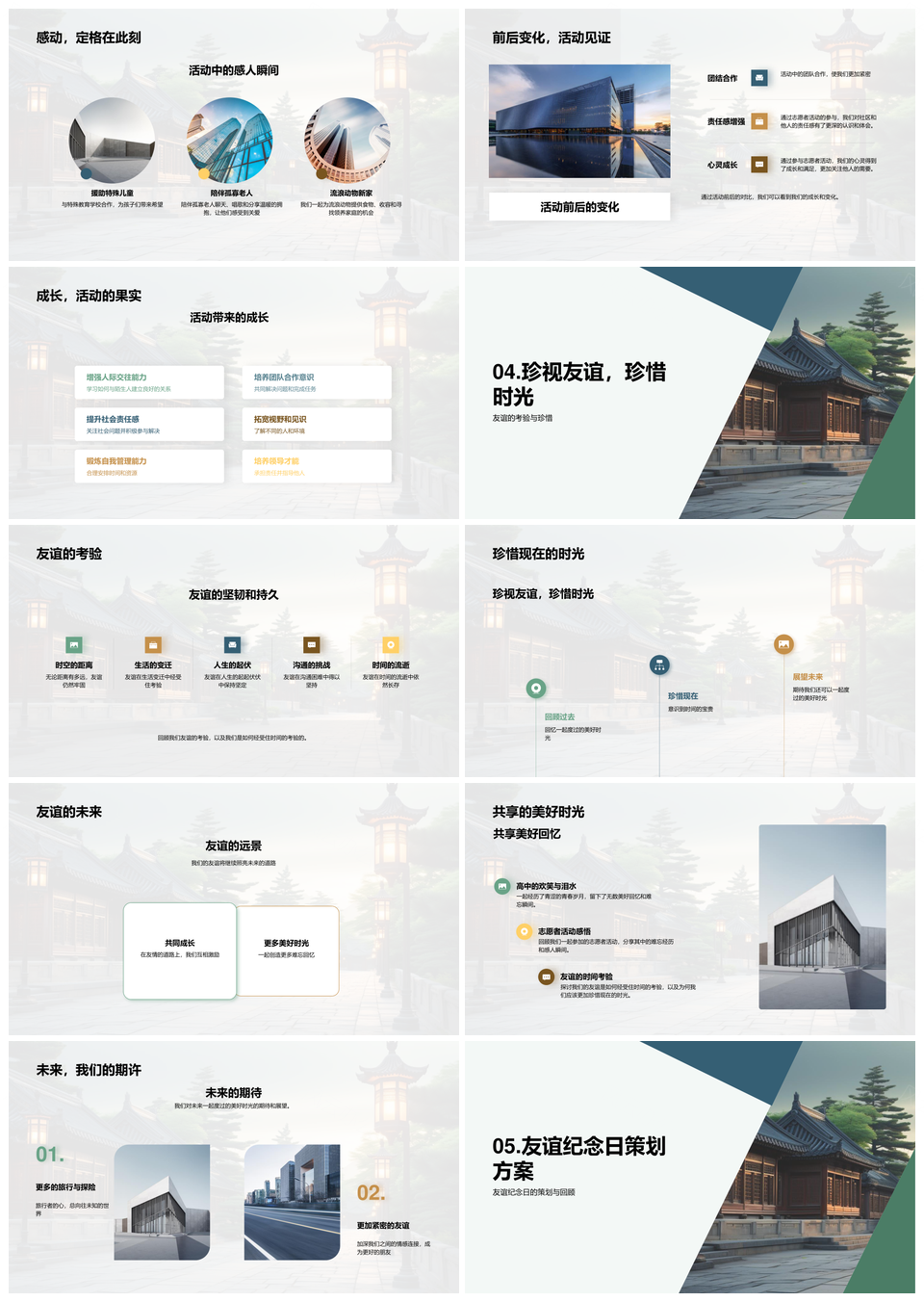 友谊回顾展望共昔今毕业照考验惜时光PPT模板推荐