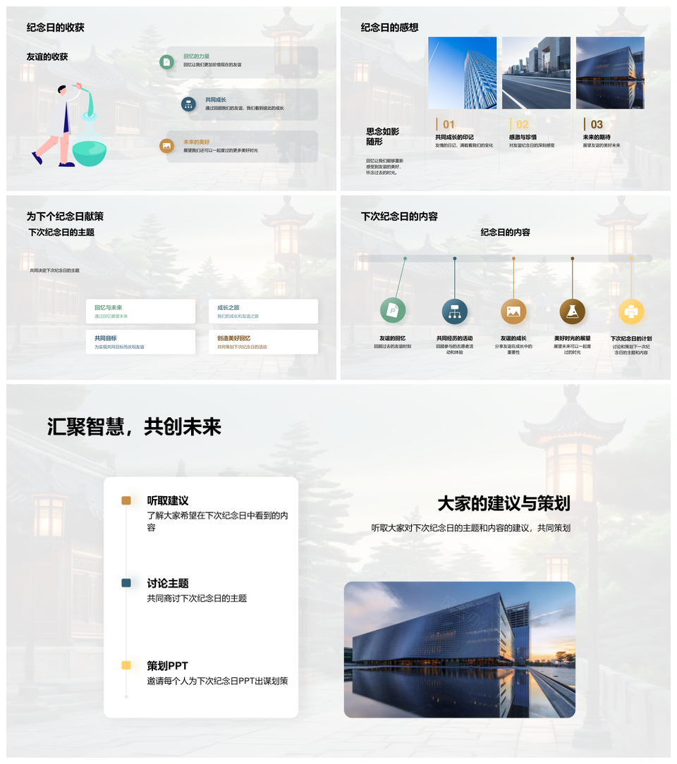 友谊回顾展望共昔今毕业照考验惜时光PPT模板