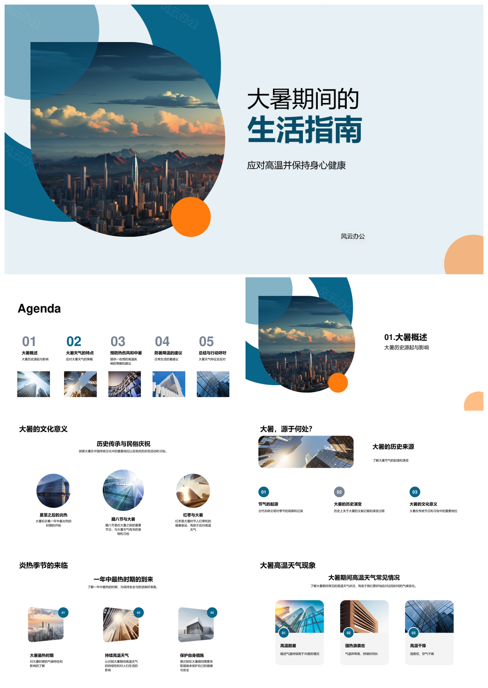 这是一张大暑高温防暑降温健康风险透气衣物管理PPT模板,包含大暑、高温、防暑、降温、健康风险、透气衣物、管理等主题内容,也可用作大暑高温防暑降温、高温防暑降温健康、防暑降温健康风险、降温健康风险透气、健康风险透气衣物、大暑高温健康风险、高温防暑透气衣物、防暑降温透气管理、降温透气衣物管理、大暑防暑健康透气、高温降温风险衣物、防暑健康管理透气、大暑降温衣物管理、高温健康透气衣物、防暑风险透气管理等PPT场景使用。 风云办公提供的大暑高温防暑降温健康风险透气衣物管理PPT模板,下载格式为pptx,一共30页,作品中文字及图均可以修改和编辑,图片更改请在作品中右键图片并更换,文字修改请直接点击文字进行修改。