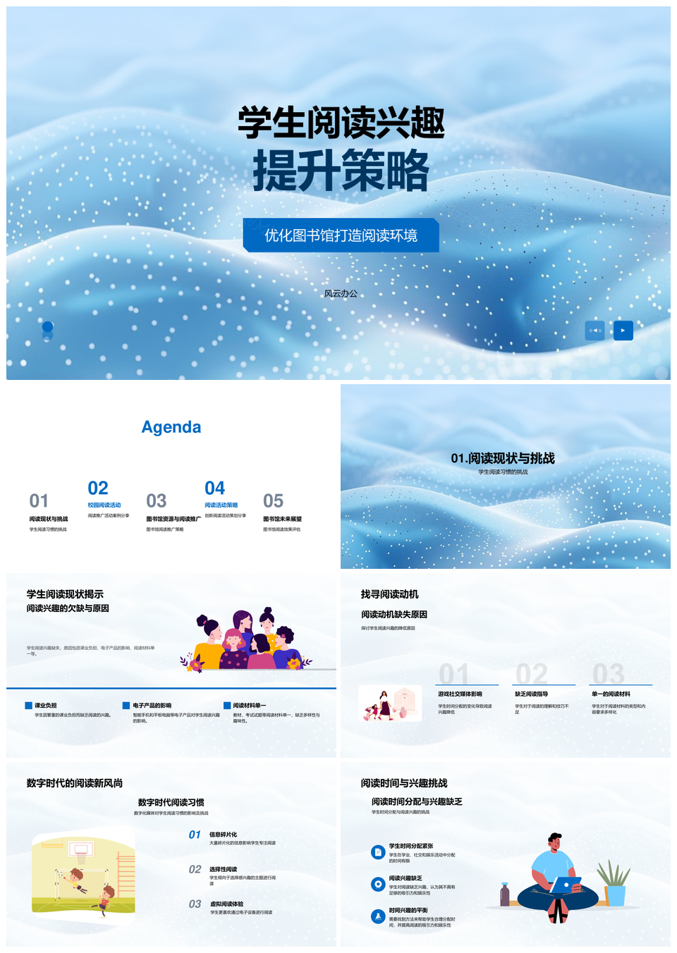 这是一张学生阅读兴趣图书馆环境数字时代互动活动提升PPT模板,包含学生、阅读兴趣、图书馆、环境、数字时代、互动活动、提升等主题内容,也可用作学生阅读兴趣提升、图书馆环境数字时代、数字时代互动活动、互动活动提升兴趣、学生阅读图书馆环境、学生阅读兴趣、数字时代互动、互动活动提升、阅读兴趣提升、图书馆环境数字、学生阅读、阅读兴趣、图书馆环境、数字时代、互动活动等PPT场景使用。 风云办公提供的学生阅读兴趣图书馆环境数字时代互动活动提升PPT模板,下载格式为pptx,一共28页,作品中文字及图均可以修改和编辑,图片更改请在作品中右键图片并更换,文字修改请直接点击文字进行修改。