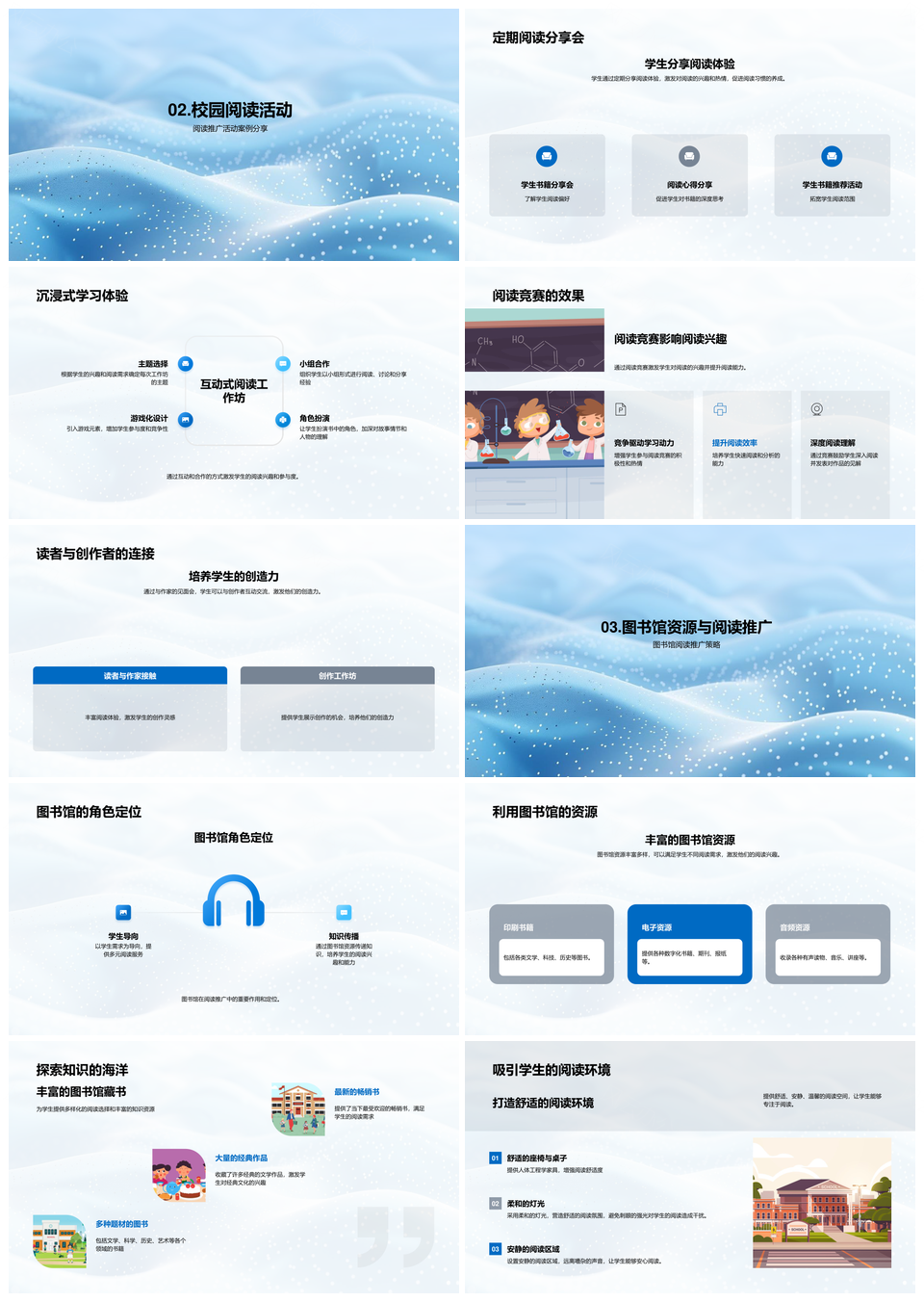 学生阅读兴趣图书馆环境数字时代互动活动提升PPT模板推荐