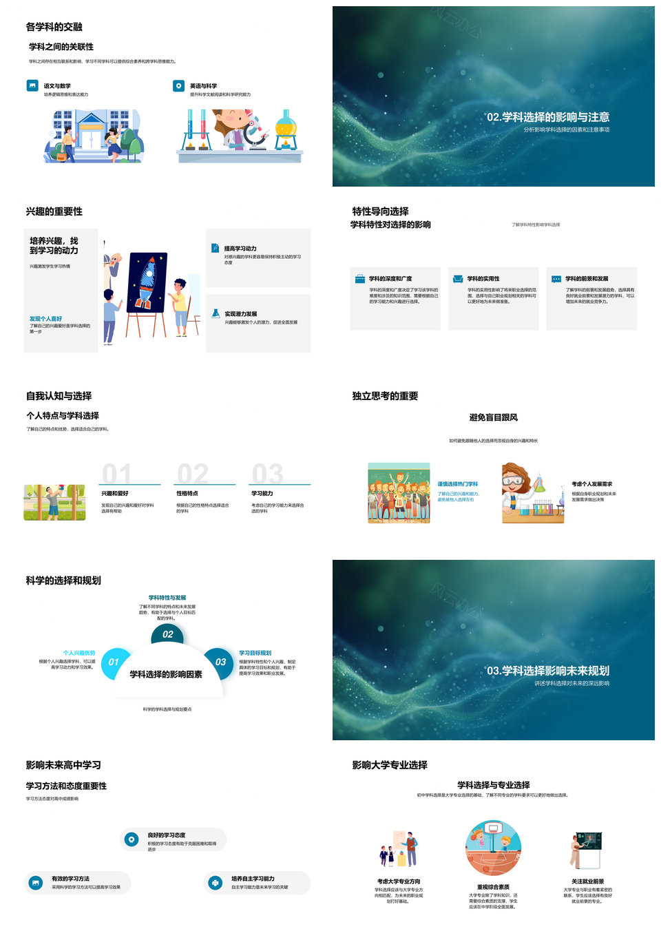 初一选科职业规划学科特性兴趣升学发展PPT模板推荐