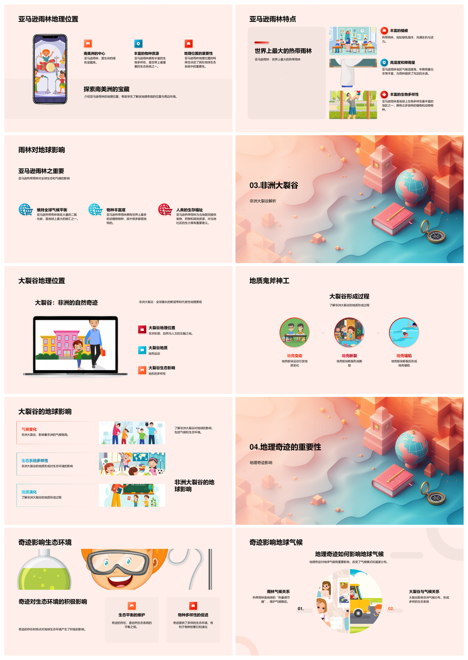 2025地理奇迹教学亚马逊雨林非洲大裂谷地质生态解析PPT模板推荐