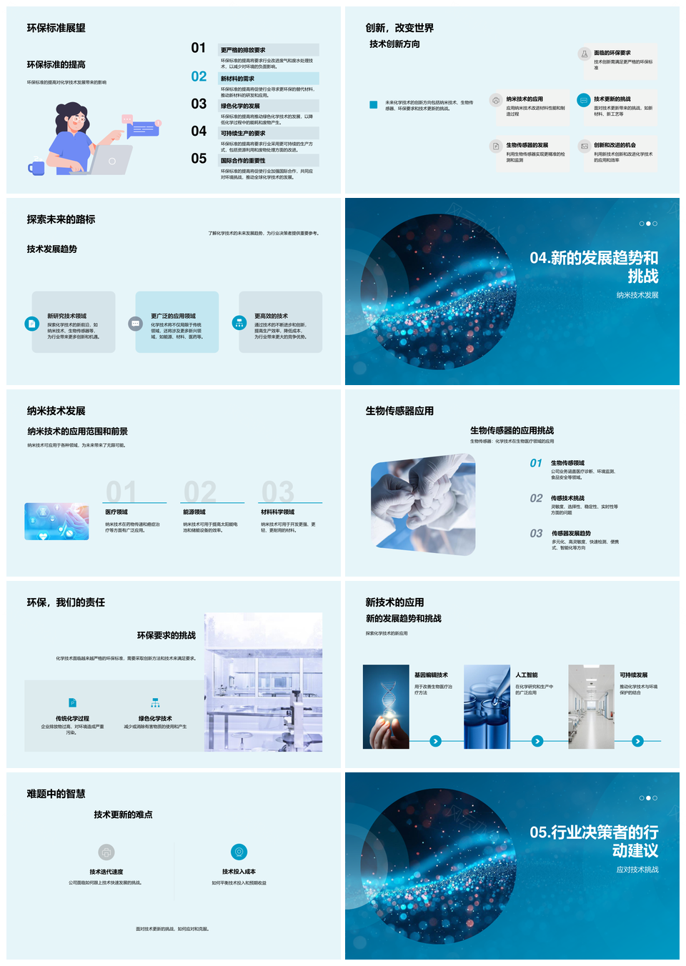 化学技术创新趋势纳米生物传感器环保挑战应用PPT模板推荐