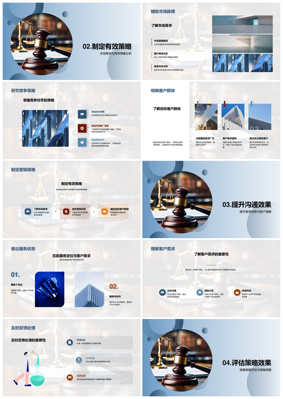 这是一张法律服务营销策略趋势客户需求法槌竞争力PPT模板,包含法律服务、营销策略、趋势、客户、需求、法槌、竞争力等主题内容,也可用作法律服务营销策略趋势、服务营销策略趋势客户、营销策略趋势客户需求、策略趋势客户需求法槌、趋势客户需求法槌竞争力、法律服务营销策略、服务营销策略趋势、营销策略趋势客户、策略趋势客户需求、趋势客户需求法槌、客户需求法槌竞争力、法律服务竞争力、服务营销趋势、客户需求法槌、营销策略趋势、法槌竞争力等PPT场景使用。 风云办公提供的法律服务营销策略趋势客户需求法槌竞争力PPT模板,下载格式为pptx,一共25页,作品中文字及图均可以修改和编辑,图片更改请在作品中右键图片并更换,文字修改请直接点击文字进行修改。