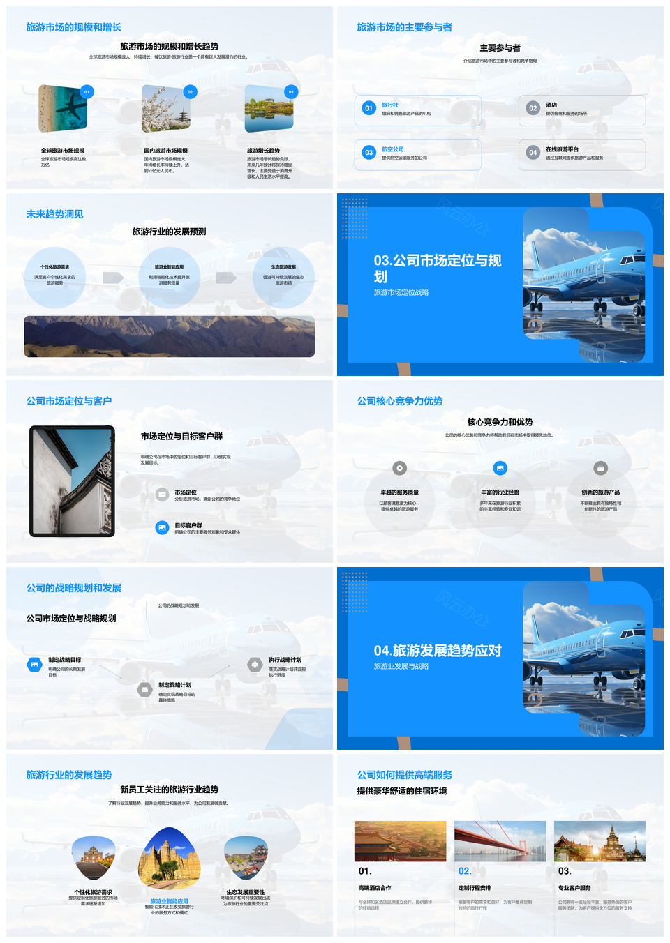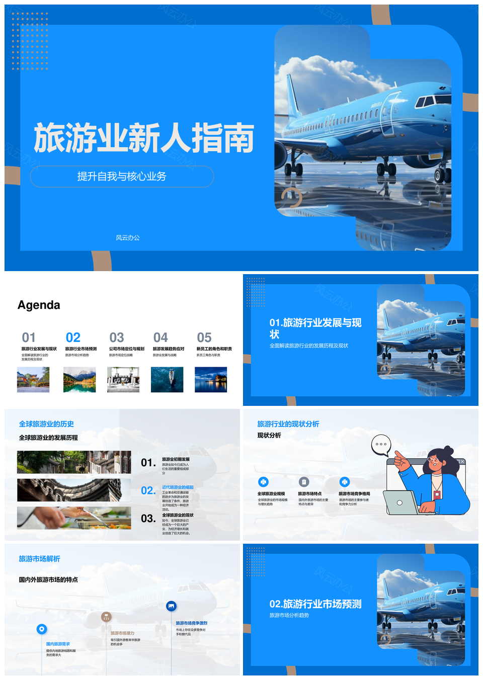 风云办公提供的旅游业新人指南企业运营文化线路规划PPT模板,下载格式为pptx,一共23页,作品中文字及图均可以修改和编辑,图片更改请在作品中右键图片并更换,文字修改请直接点击文字进行修改。