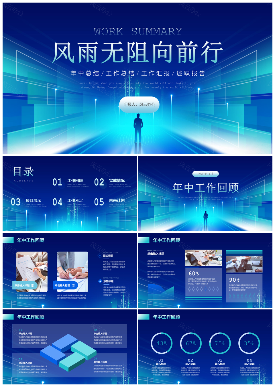 风云办公提供的蓝绿科技风公司年中部门工作总结汇报PPT模板,下载格式为pptx,一共24页,作品中文字及图均可以修改和编辑,图片更改请在作品中右键图片并更换,文字修改请直接点击文字进行修改。