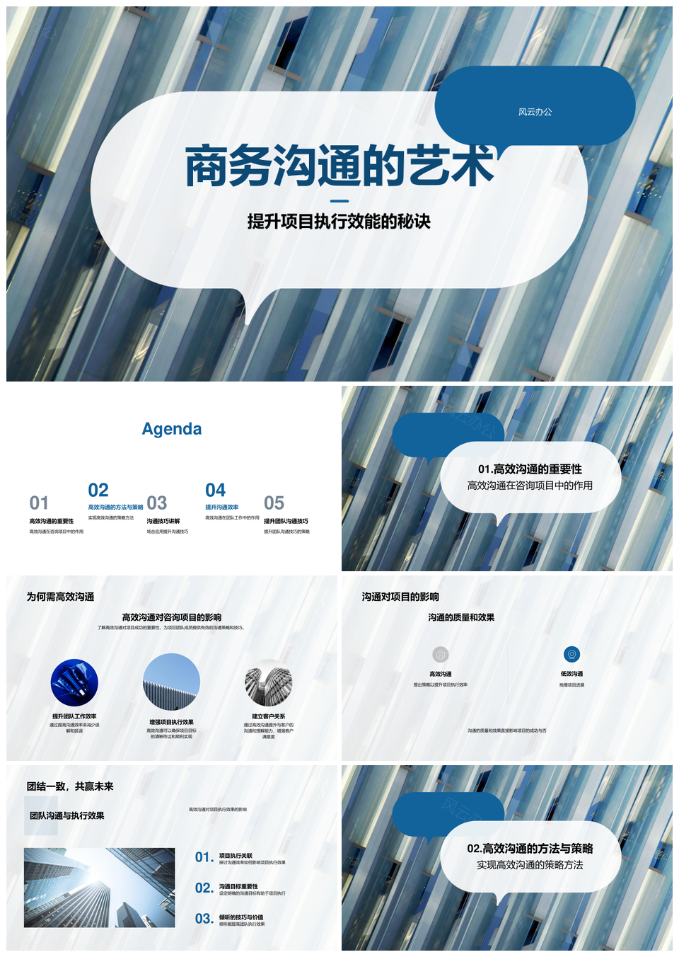 风云办公提供的高效商务沟通协作提升项目执行效能PPT模板,下载格式为pptx,一共25页,作品中文字及图均可以修改和编辑,图片更改请在作品中右键图片并更换,文字修改请直接点击文字进行修改。