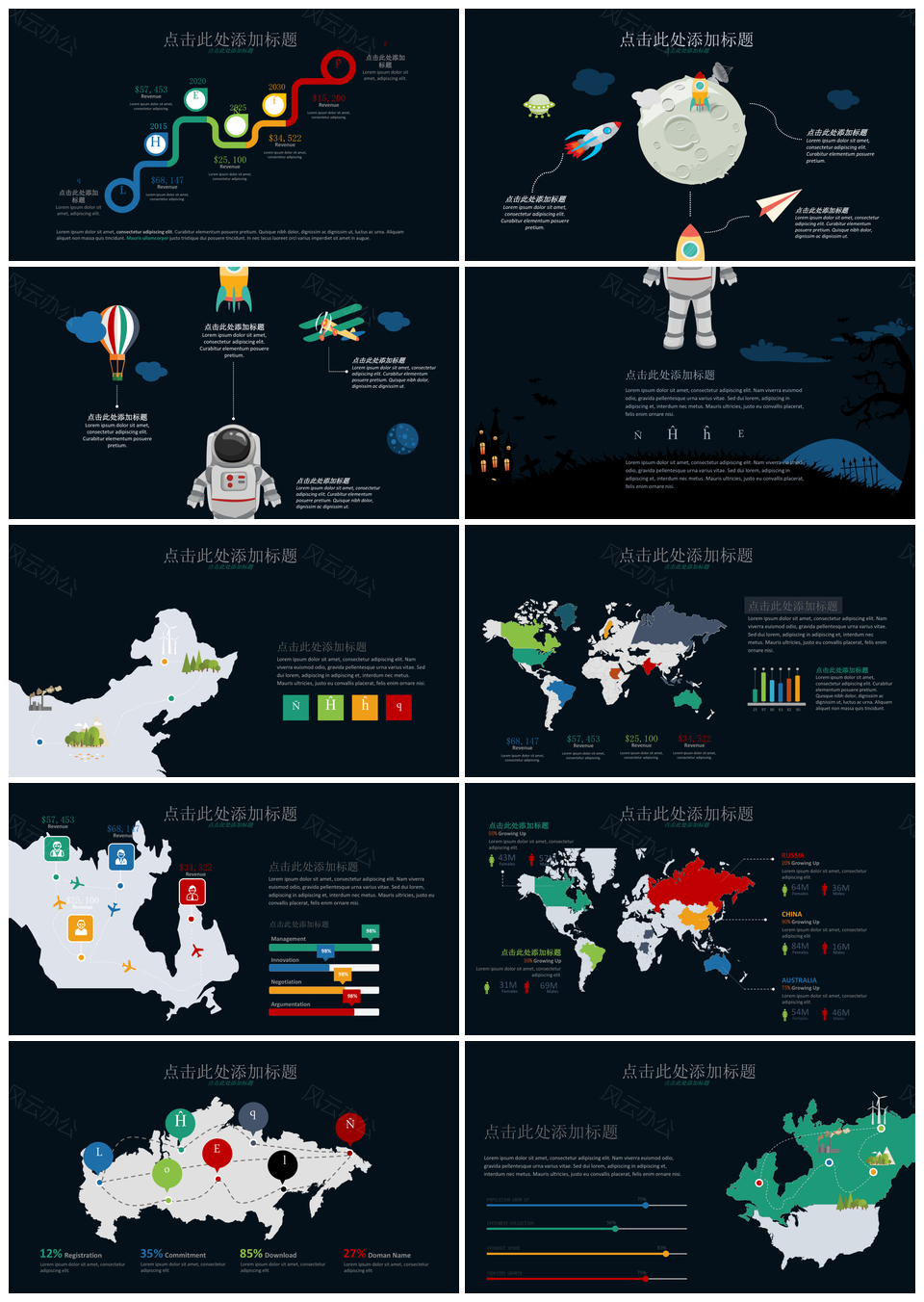 2025黑色创意星空时尚宇航员数字营销动态PPT模板
