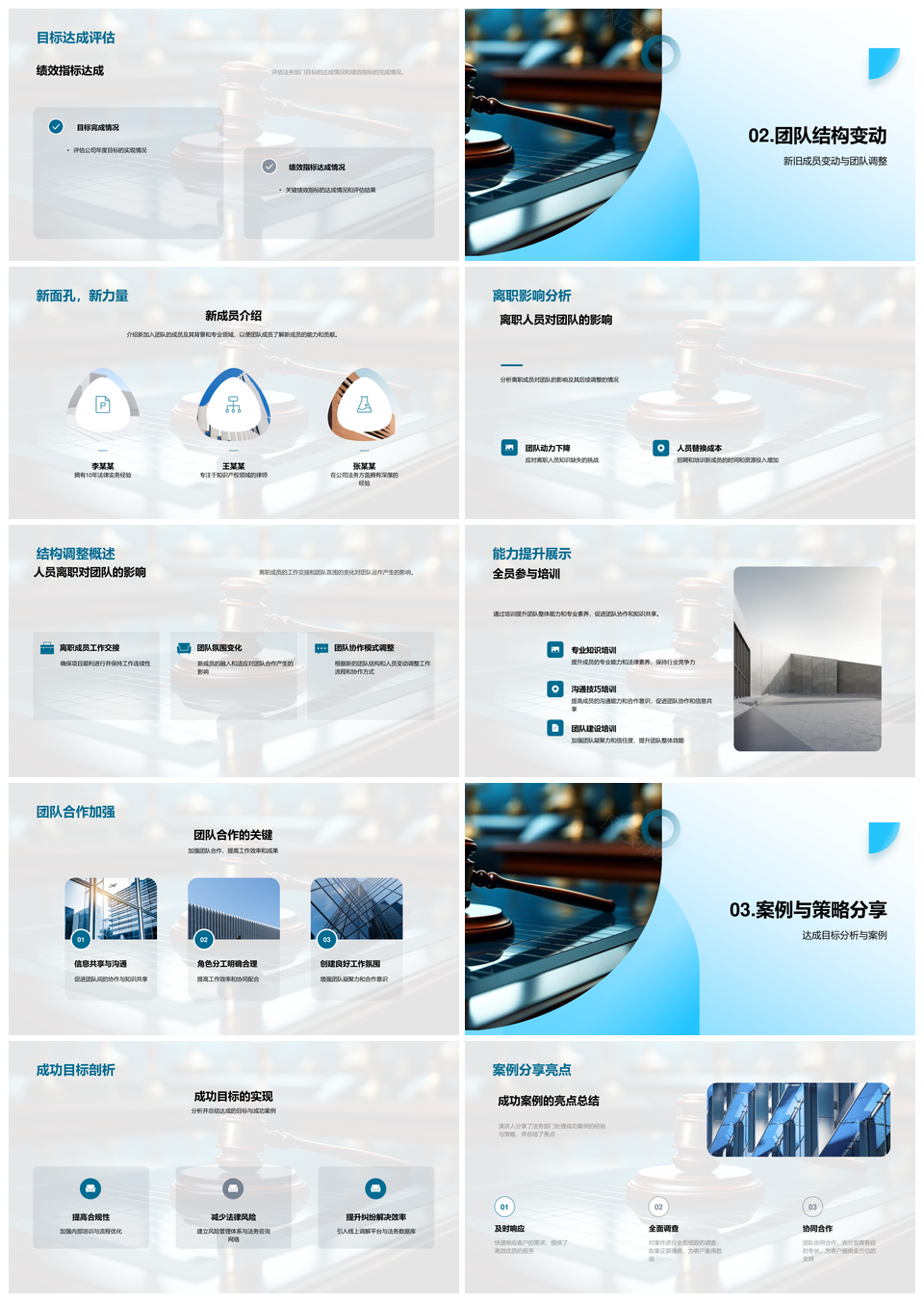 这是一张法务团队年度总结绩效团队调整流程优化案例目标PPT模板,包含法务团队、年度总结、绩效团队、调整流程、优化案例、目标等主题内容,也可用作法务团队年度总结绩效团队调整、年度总结绩效团队调整流程优化、绩效团队调整流程优化案例、调整流程优化案例目标、法务团队年度总结绩效团队、年度总结绩效团队调整、绩效团队调整流程优化、调整流程优化案例、流程优化案例目标、法务团队年度总结流程优化、绩效团队调整案例目标、法务团队年度总结、年度总结绩效团队、绩效团队调整、调整流程优化等PPT场景使用。 风云办公提供的法务团队年度总结绩效团队调整流程优化案例目标PPT模板,下载格式为pptx,一共33页,作品中文字及图均可以修改和编辑,图片更改请在作品中右键图片并更换,文字修改请直接点击文字进行修改。