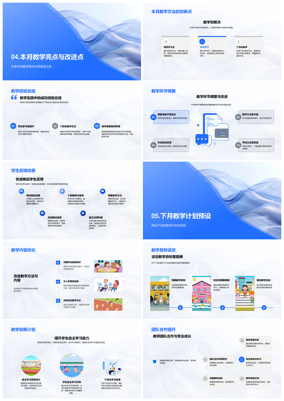 月度教学课程成效目标完成资源问题策略家长沟通PPT模板推荐