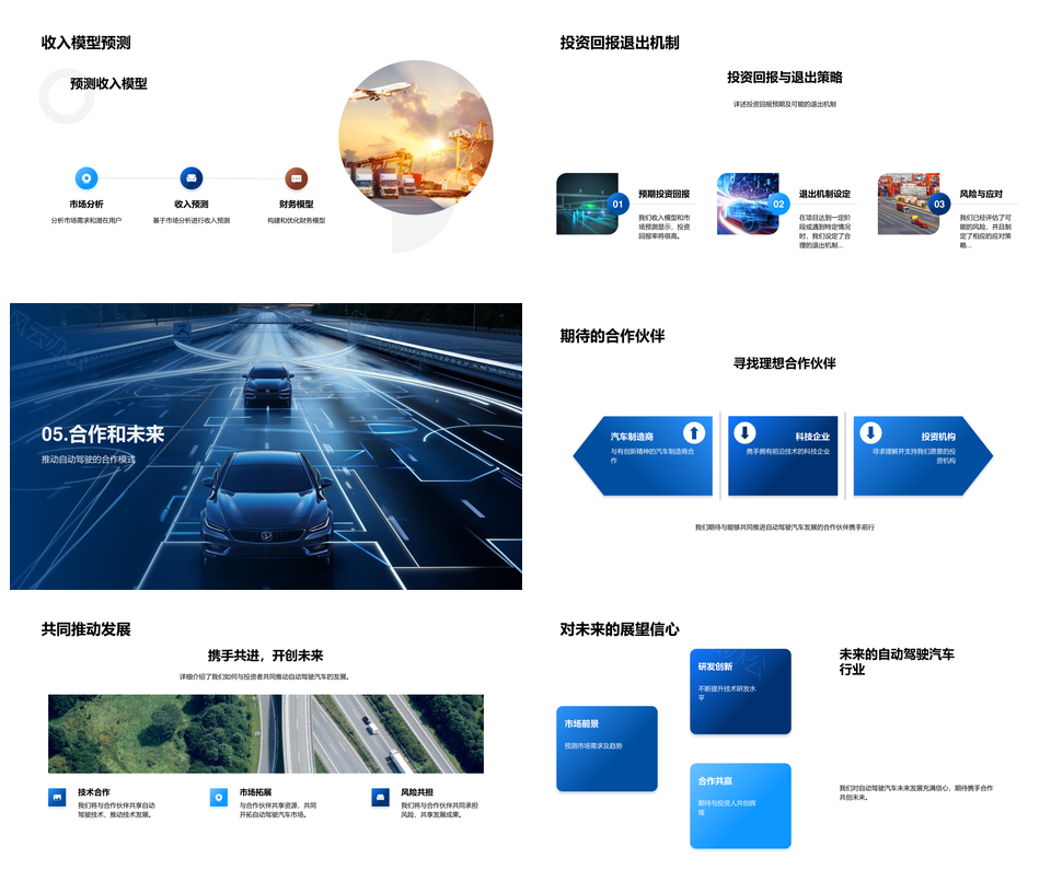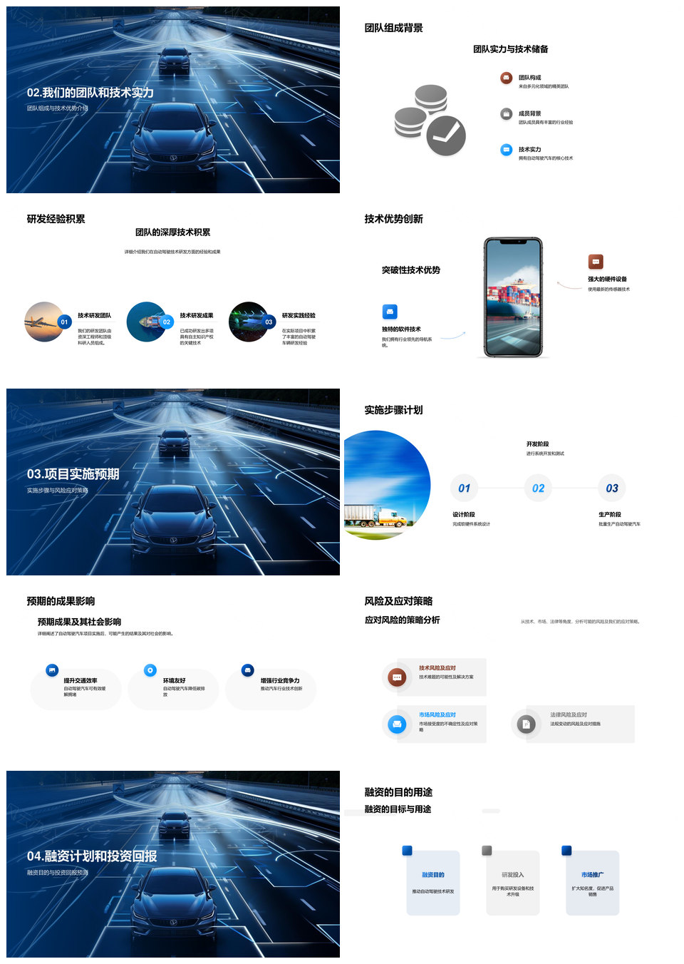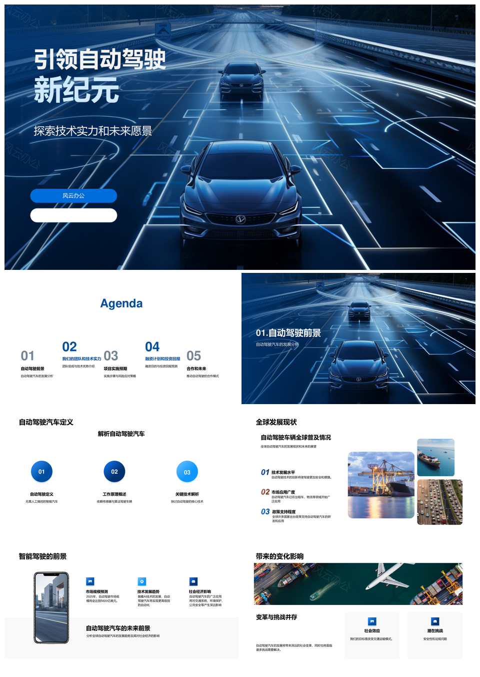 这是一张自动驾驶新纪元技术优势引领未来融资回报PPT模板,包含自动驾驶、新纪元、技术、优势、引领、未来、融资、回报等主题内容,也可用作自动驾驶新纪元技术优势、技术优势引领未来、引领未来融资回报、自动驾驶新纪元引领未来、自动驾驶新纪元、新纪元技术优势、自动驾驶技术优势、自动驾驶引领未来、新纪元引领未来、技术引领未来、未来融资回报、技术优势、引领未来、融资回报、自动驾驶技术等PPT场景使用。 风云办公提供的自动驾驶新纪元技术优势引领未来融资回报PPT模板,下载格式为pptx,一共24页,作品中文字及图均可以修改和编辑,图片更改请在作品中右键图片并更换,文字修改请直接点击文字进行修改。