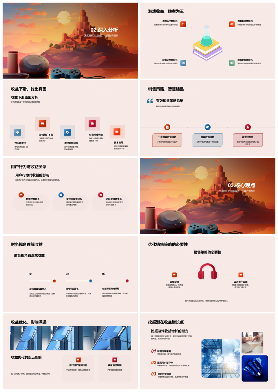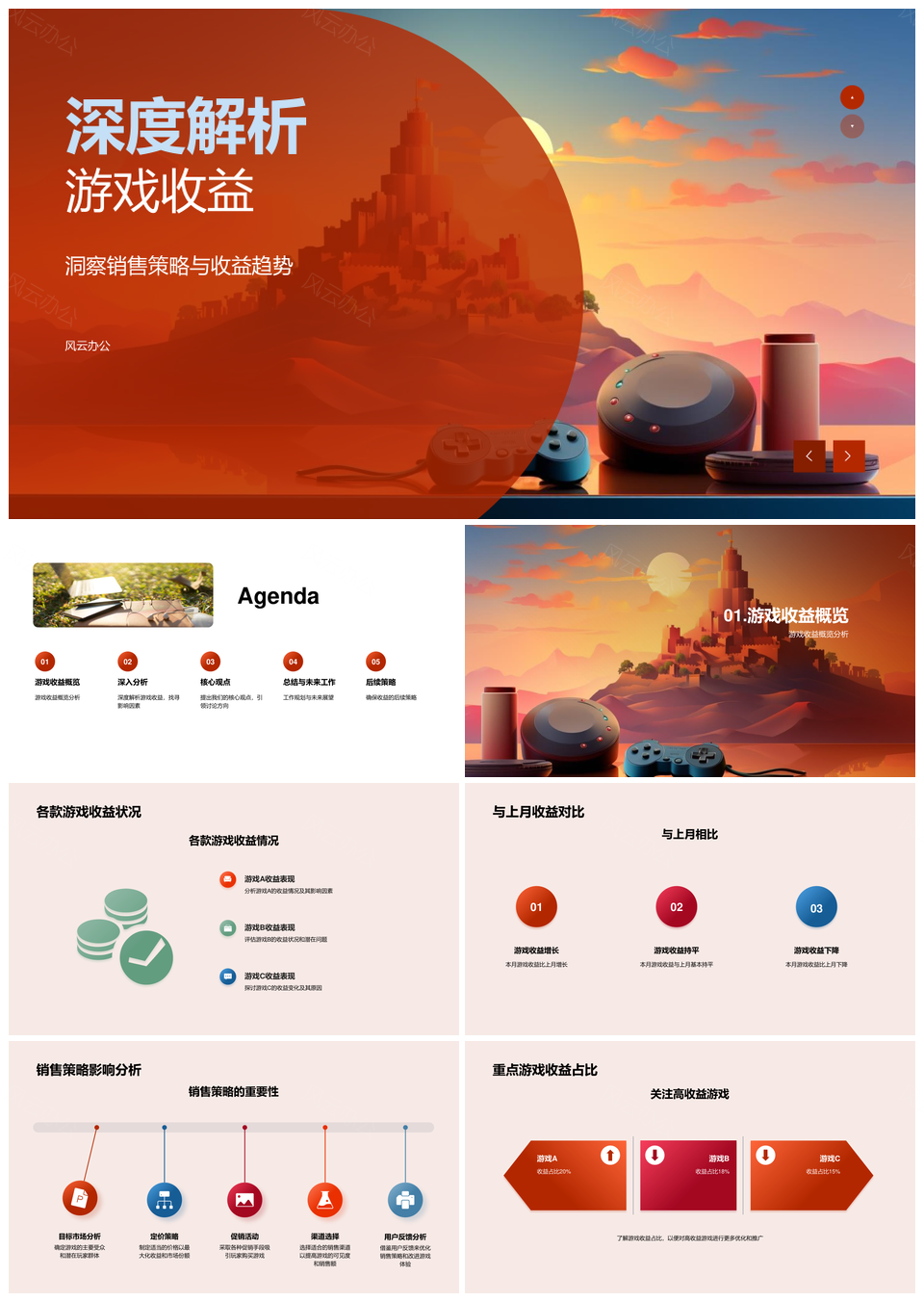这是一张游戏收益趋势同比排名下滑与销售策略解析PPT模板,包含游戏、收益、趋势、同比、排名、下滑、销售、策略、解析等主题内容,也可用作游戏收益趋势同比排名下滑、收益趋势同比排名下滑、游戏收益趋势同比、收益趋势同比排名、趋势同比排名下滑、销售策略解析同比排名、游戏收益趋势同比排名、收益趋势同比排名、游戏收益趋势下滑、同比排名下滑趋势、销售策略解析趋势、游戏收益排名下滑、收益排名下滑趋势、销售策略趋势同比、策略解析同比排名等PPT场景使用。 风云办公提供的游戏收益趋势同比排名下滑与销售策略解析PPT模板,下载格式为pptx,一共28页,作品中文字及图均可以修改和编辑,图片更改请在作品中右键图片并更换,文字修改请直接点击文字进行修改。