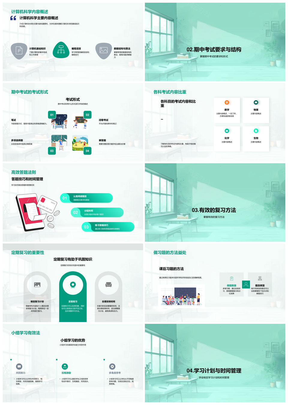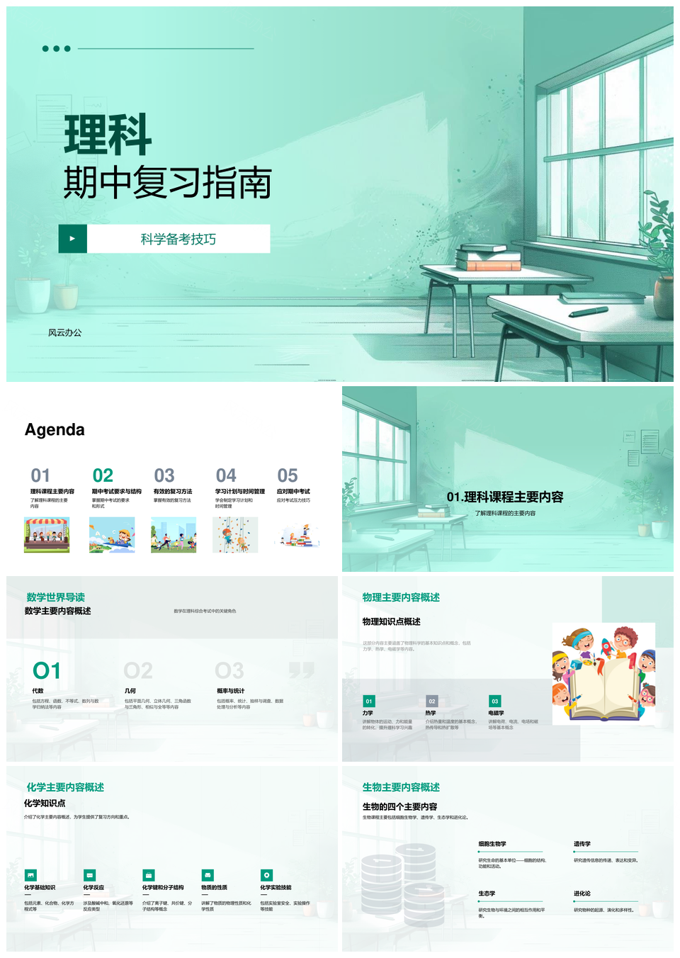 2025理科期中数理化生复习备考技巧小组学习定期复习PPT模板推荐