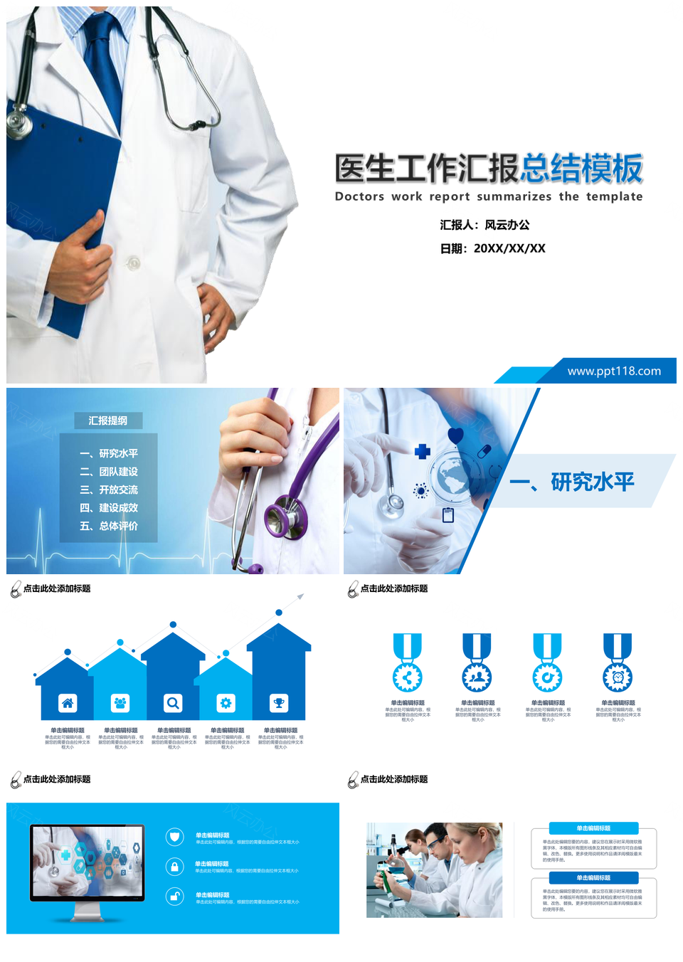 蓝色医学医疗工作总结汇报医生PPT模板