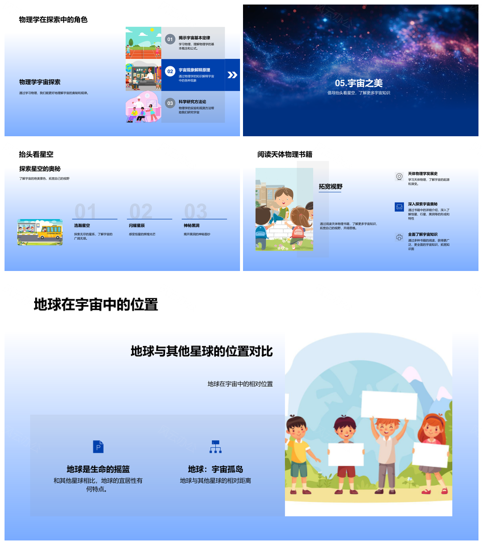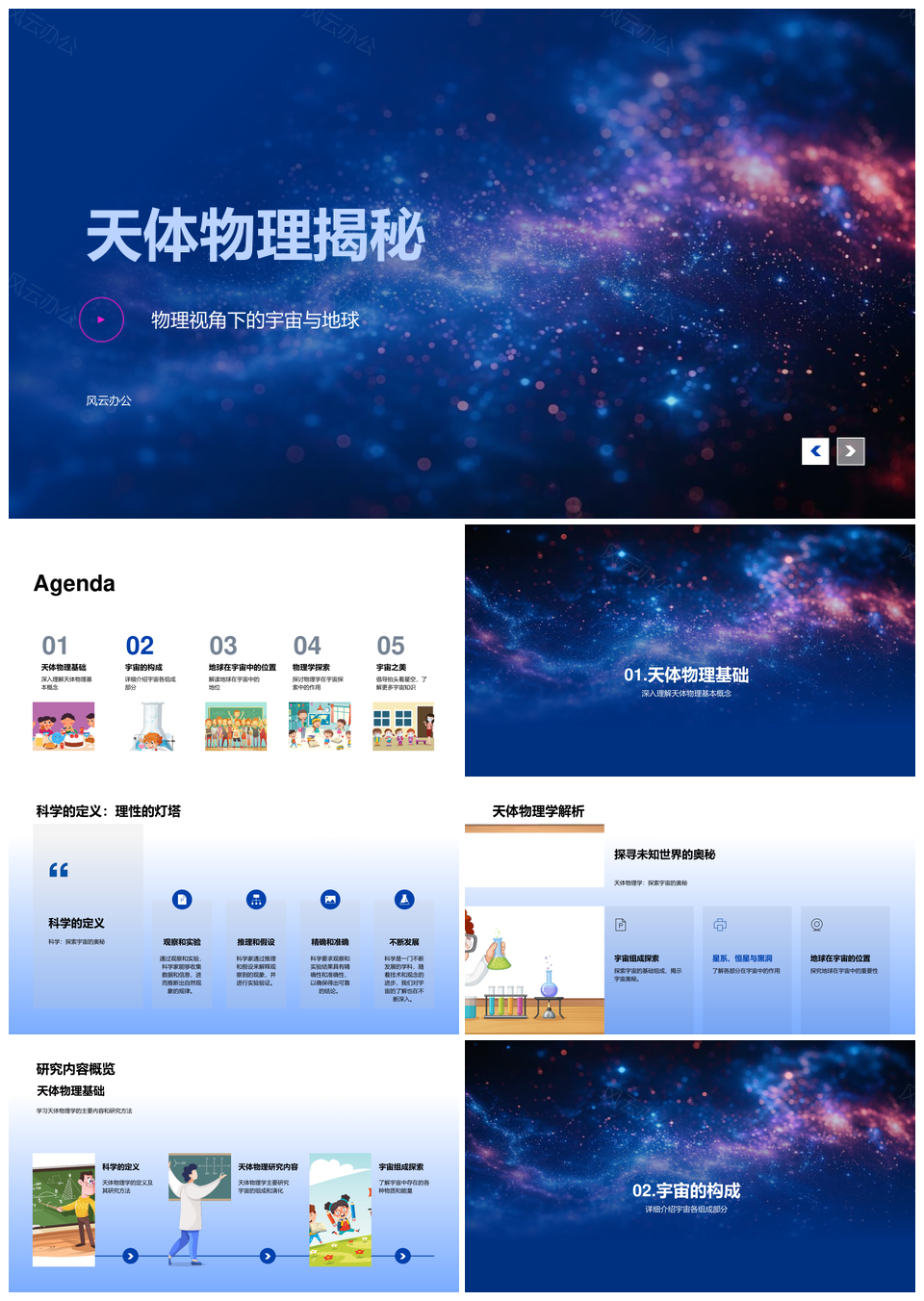 天体物理揭秘宇宙地球星系恒星行星科学构成PPT模板