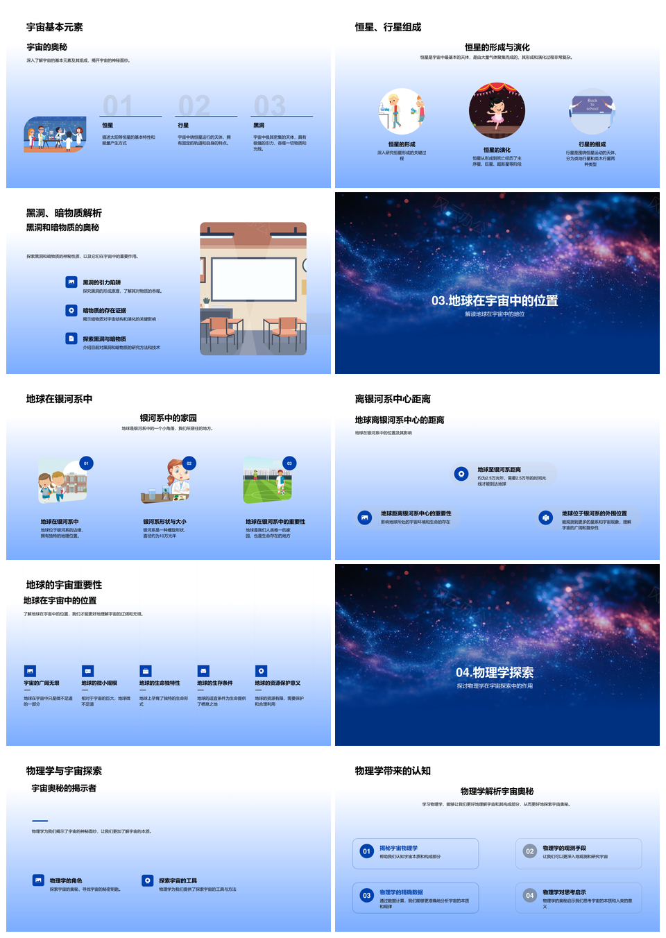 2025太空科学启蒙太阳系行星太阳宇宙年龄演变黑洞星系地球位置PPT模板