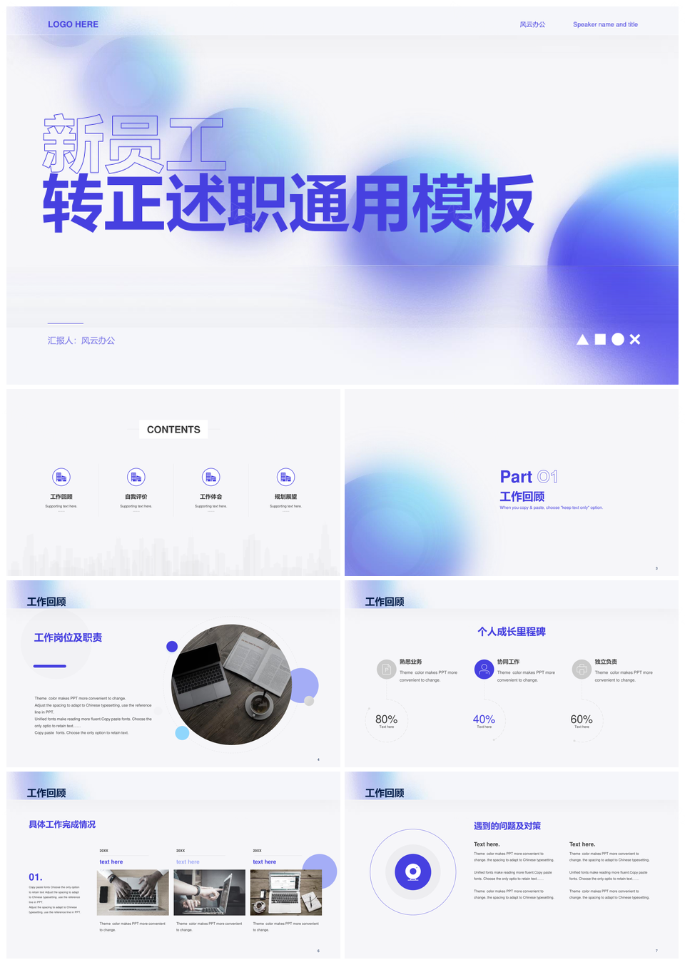 风云办公提供的蓝色创意弥散圆竞聘转正述职汇报PPT模板,下载格式为pptx,一共19页,作品中文字及图均可以修改和编辑,图片更改请在作品中右键图片并更换,文字修改请直接点击文字进行修改。