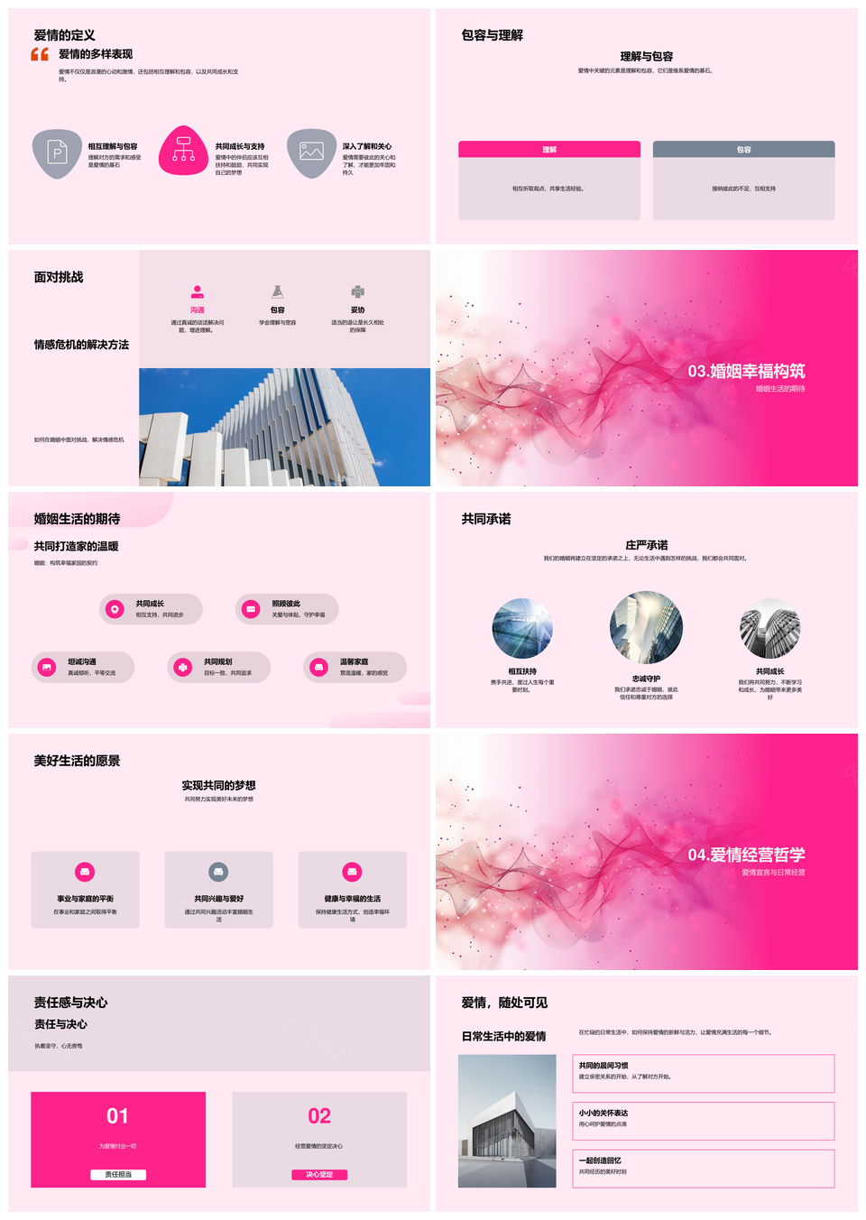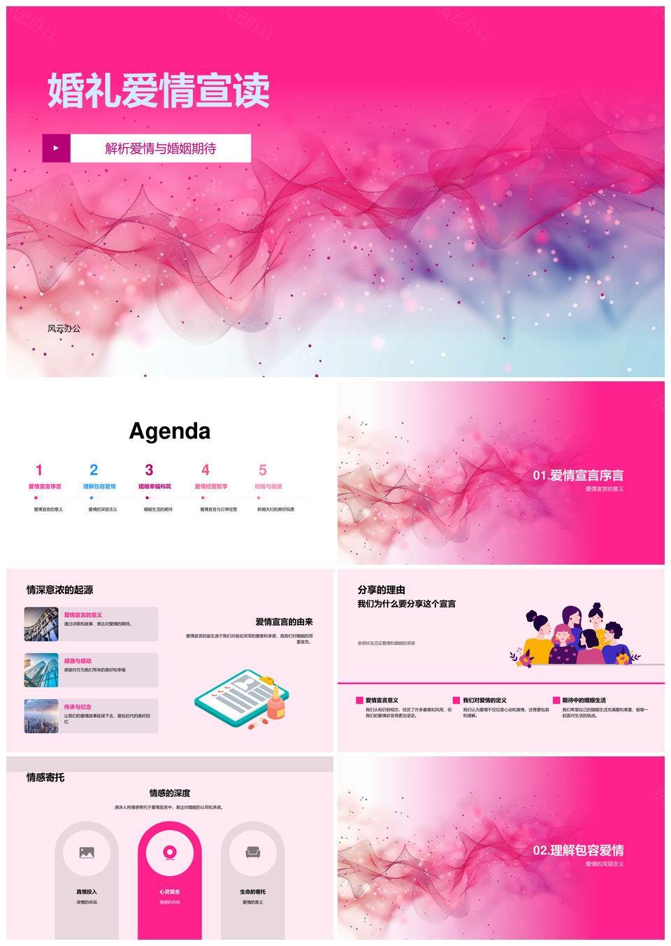 风云办公提供的新婚夫妇爱情定义包容维系婚姻期待PPT模板,下载格式为pptx,一共23页,作品中文字及图均可以修改和编辑,图片更改请在作品中右键图片并更换,文字修改请直接点击文字进行修改。